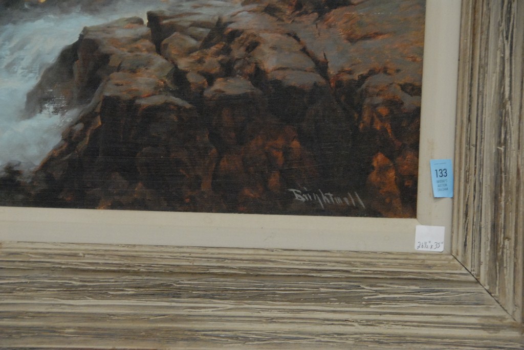 Walter E. Brightwell 1999 oil on canvas of crashing waves signed lower right Brightwell.