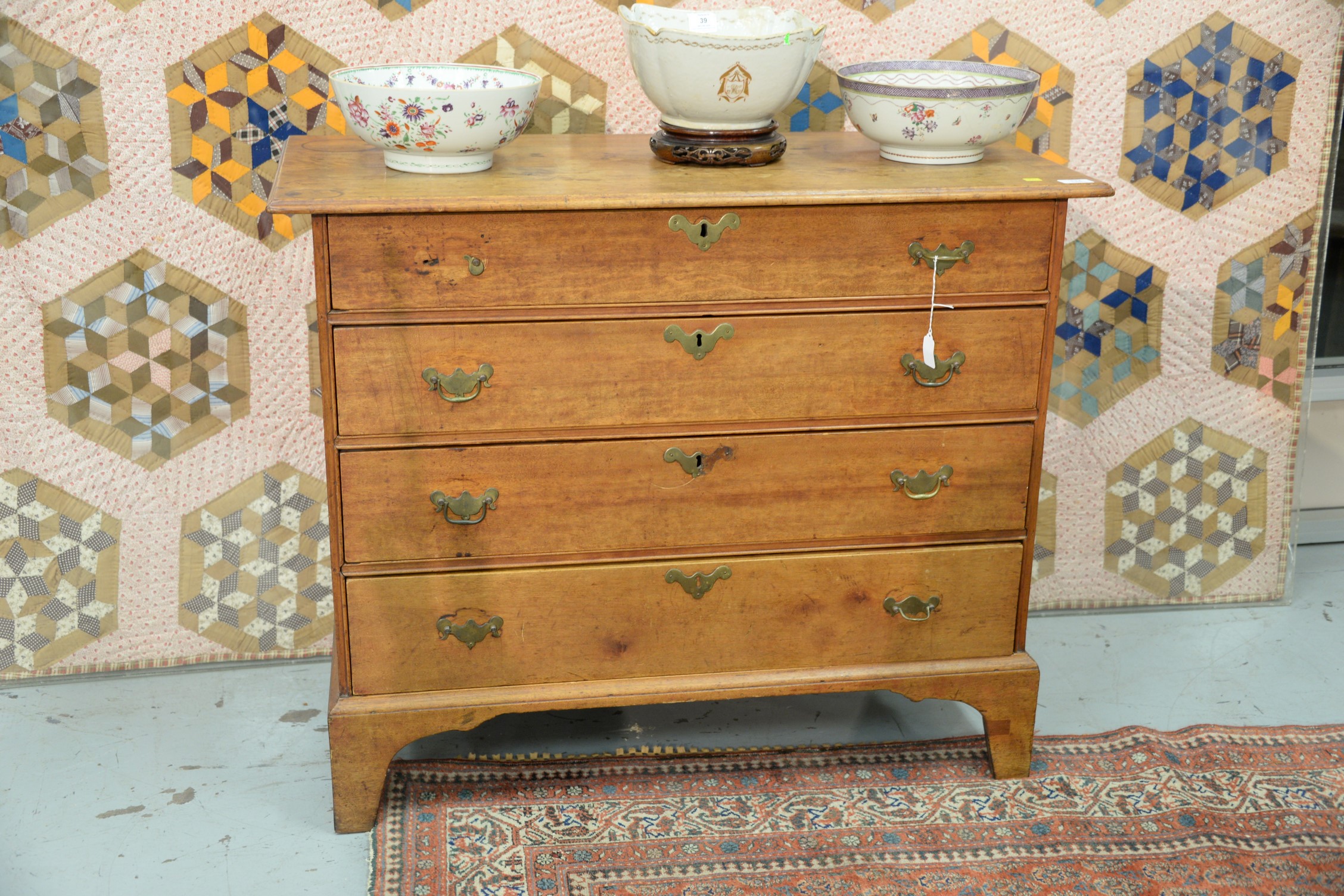 Lot 134: Chippendale chest having molded top over four drawers set on cutout bracket feet, late 18th century. ht. 32 in. case wd. 36 in….