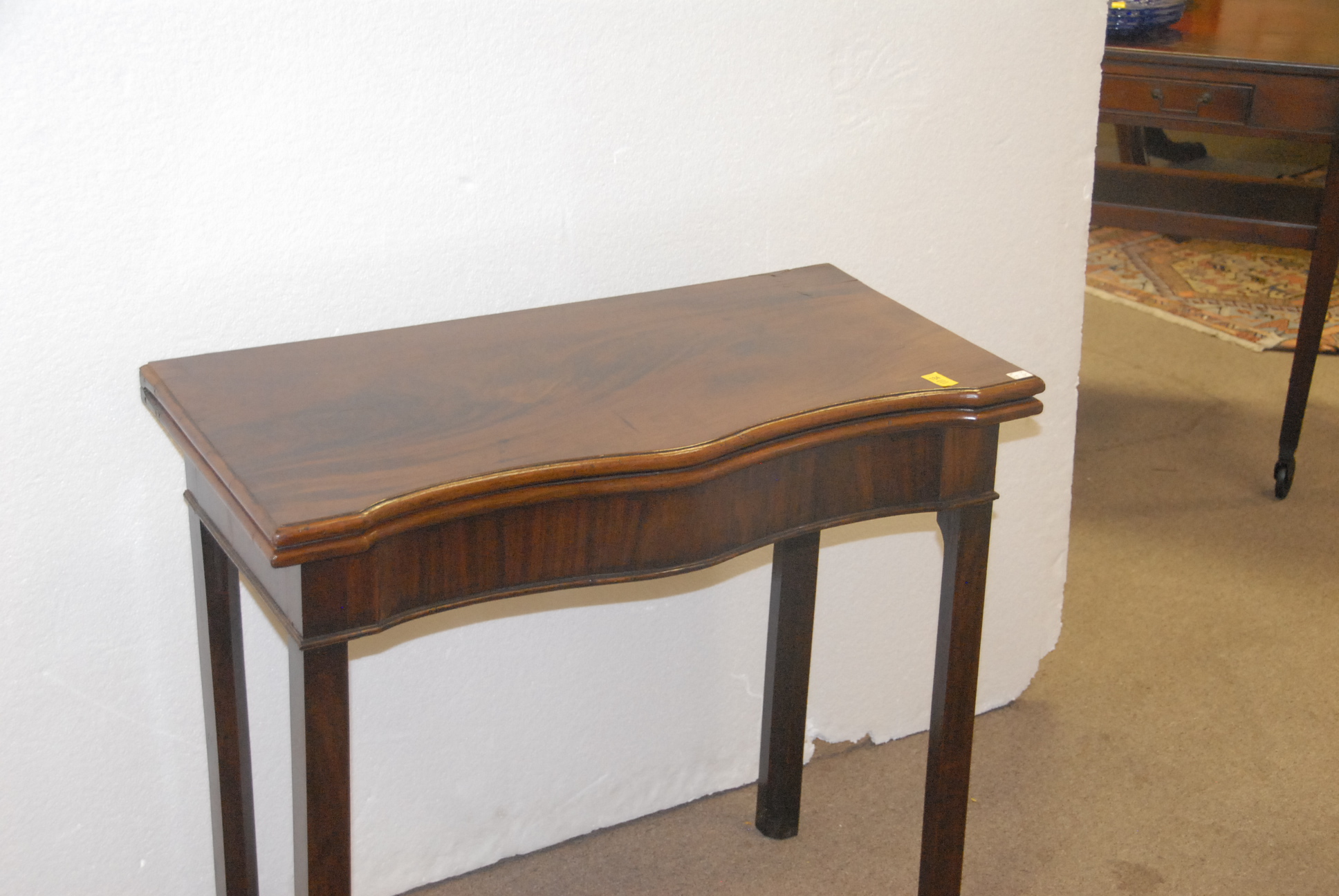 Georgian mahogany game table with shaped top on squared legs with felt interior. ht. 29in., wd. 32in., dp. 16in.