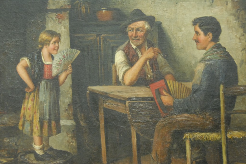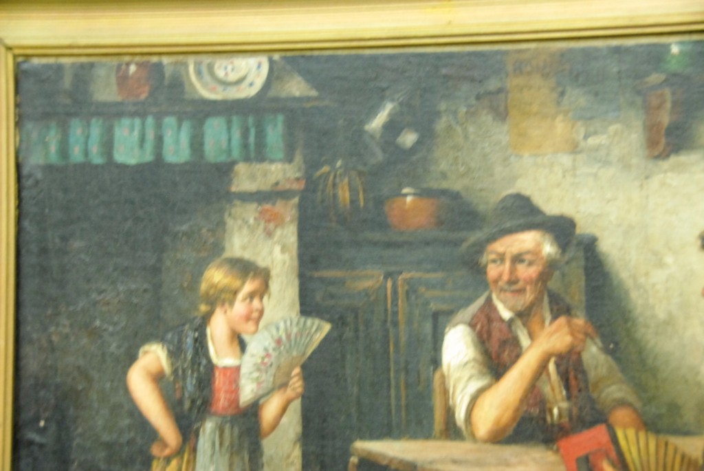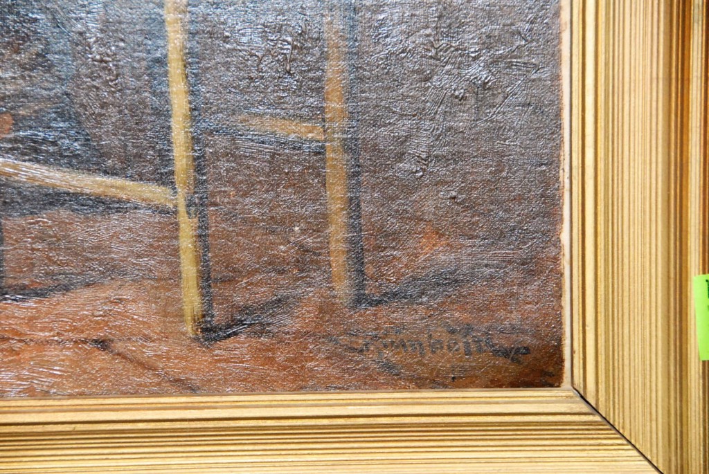 Lot 134: Irvin Boyd European interior scene oil on canvas restretched and relined, signed lower right Irvin Boyd, 22 x 27.