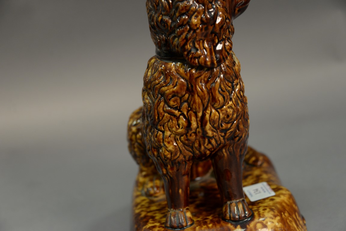 Large Rockingham or Bennington King Charles dog repaired. ht. 11 1/2in.