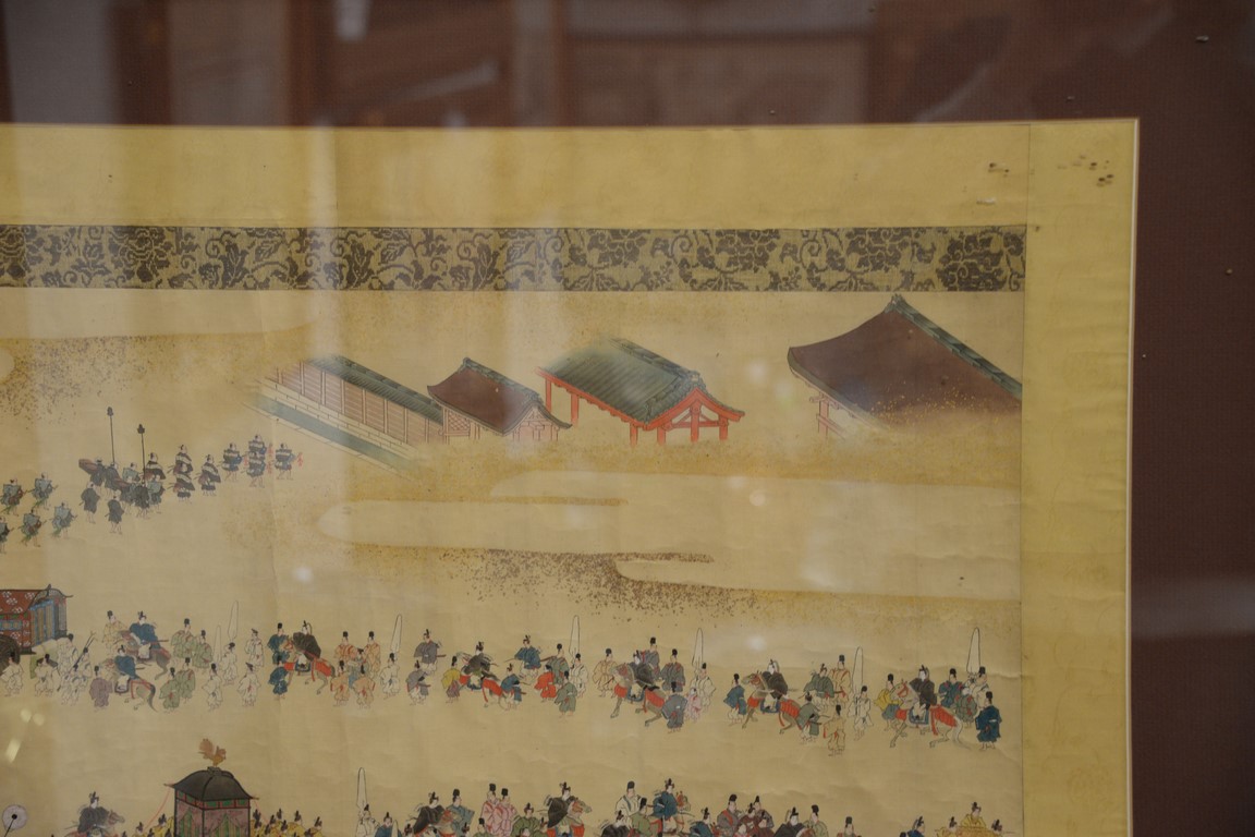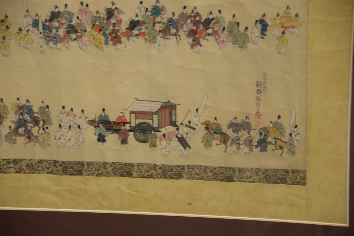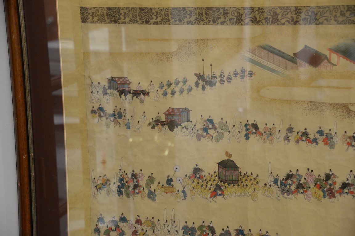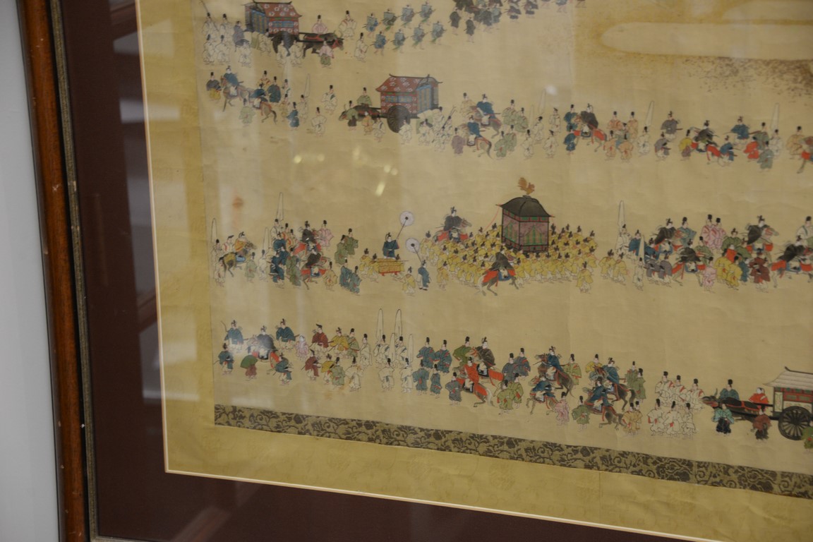 Lot 134: Large watercolor on silk of Chinese parade signed lower right. 25 x 33