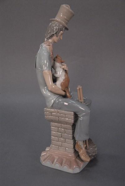Lladro figure Chimney Sweep with Cat. ht. 17in.