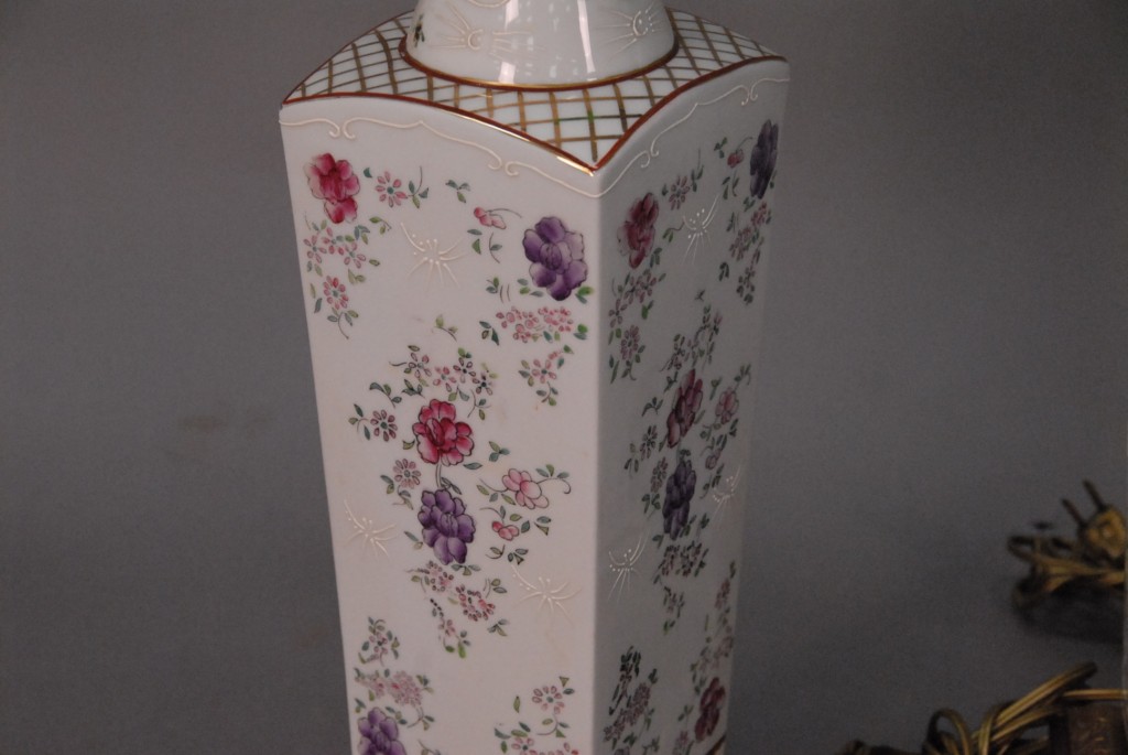 Pair of Samson porcelain urns made into table lamps.