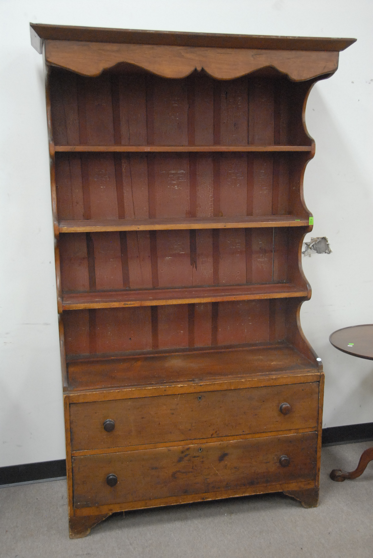 Primitive cupboard open top and two drawers in base, ht. 77in. wd. 43in.