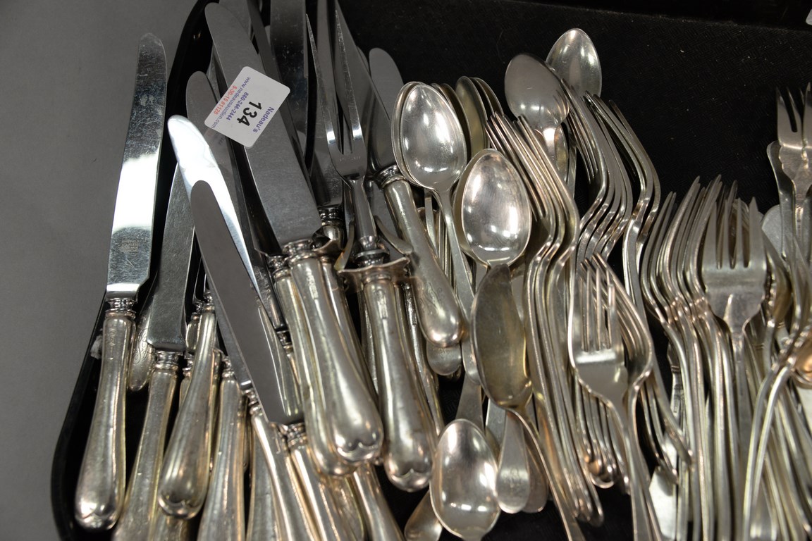 Sterling silver flatware setting for twelve. 135.6 t oz. plus 24 knife handles.