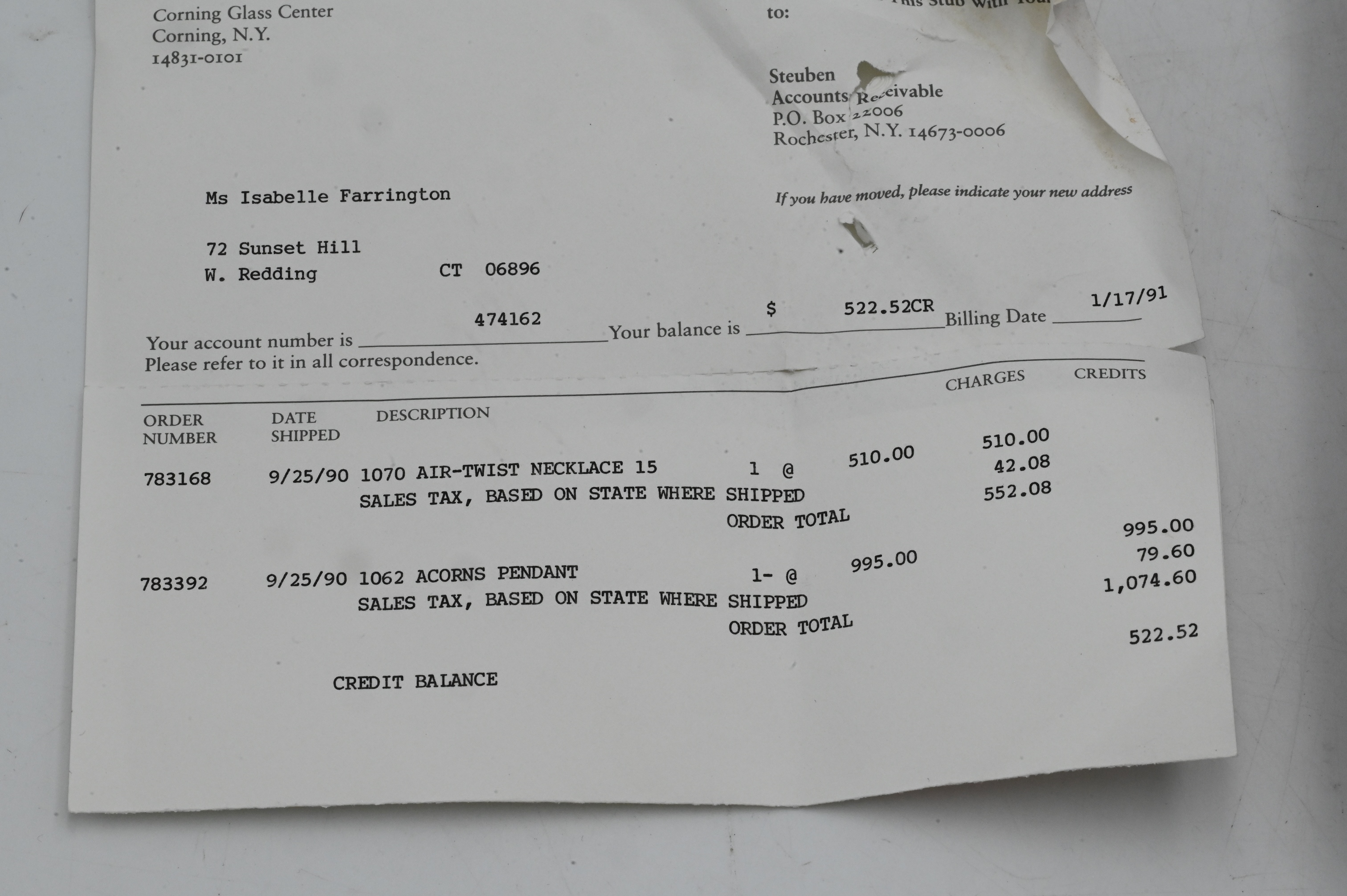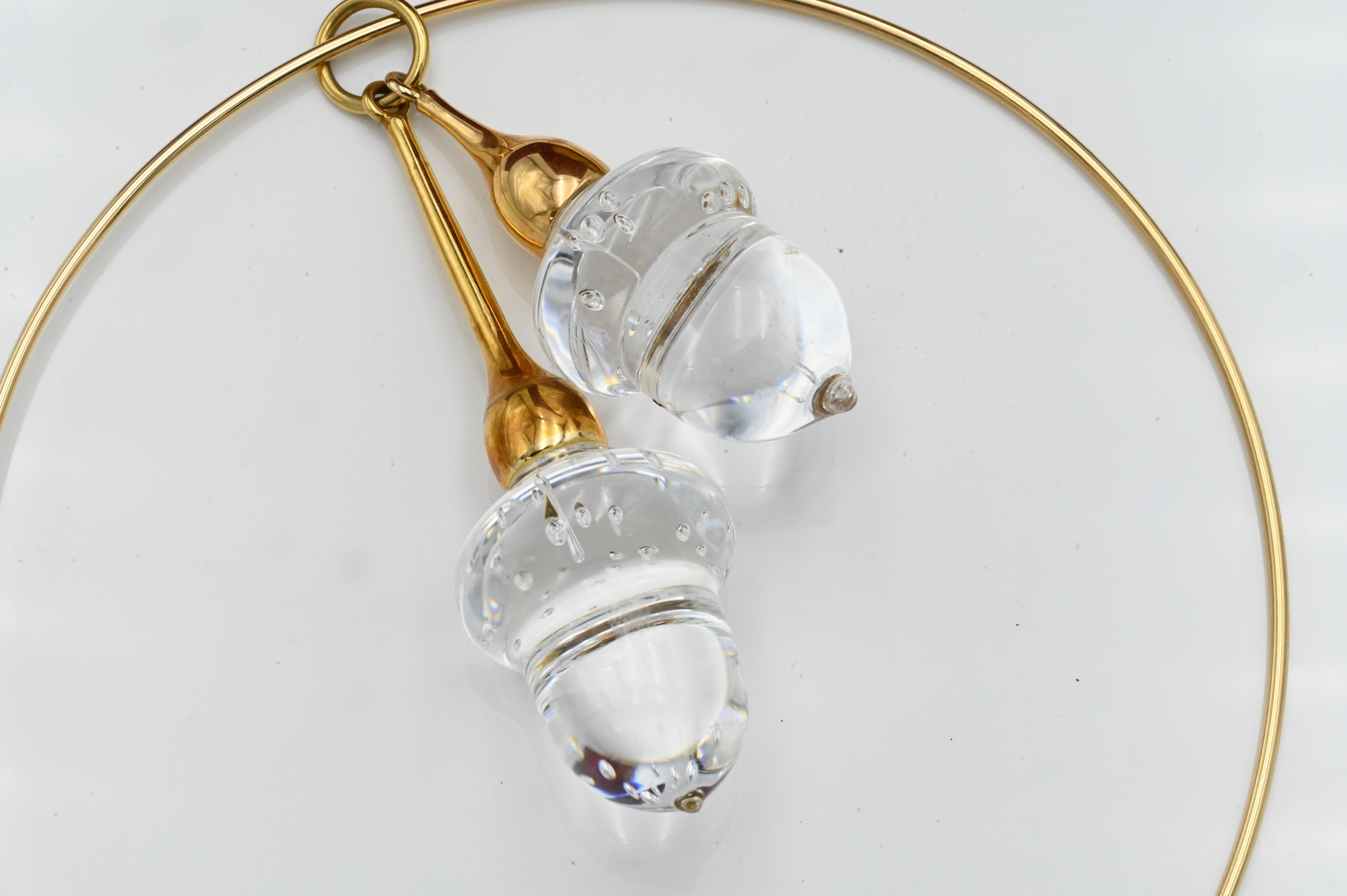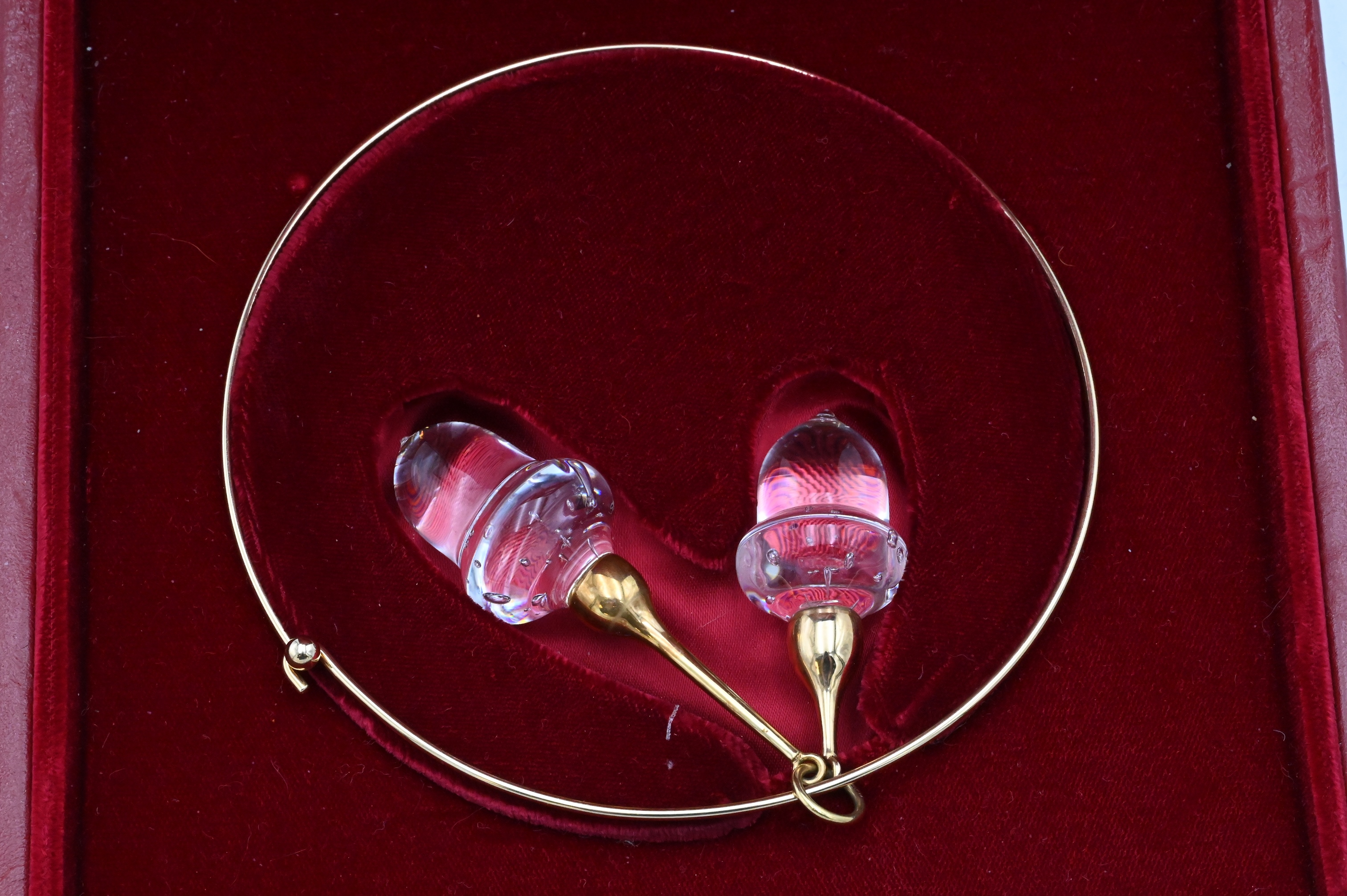 having acorn double pendant, in original Steuben box along with original bill of sale from 1991
