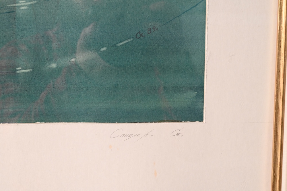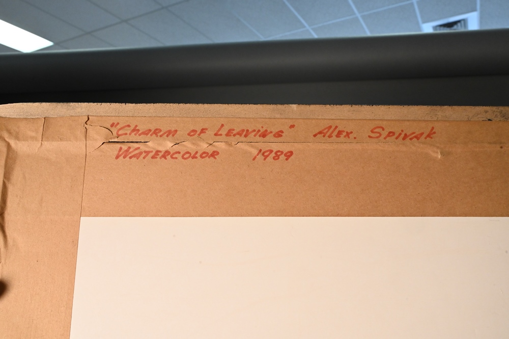 Two Framed Pieces, to include Dead Sea Scrolls, 1988, frame size 29.5″ x 26″; and The Musicians by Alex Spivak watercolor 1989, 24″ x 21″.