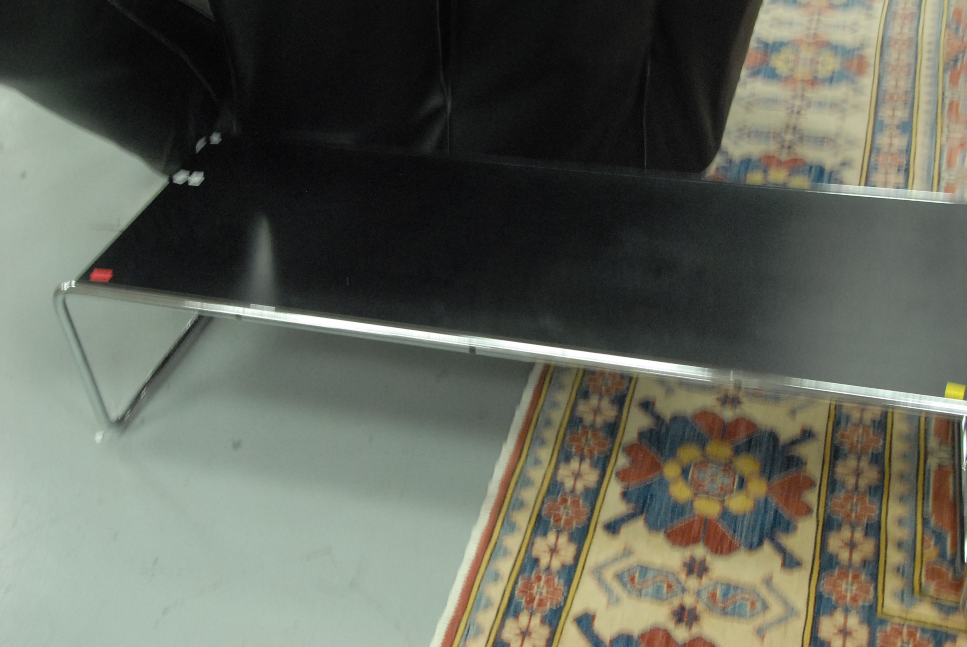 Lot 134: Two Marcel Breuer tubular chrome tables with black laminate tops by Knoll Studio, circa late 1990s edition coffee table: lg. 52 wd…