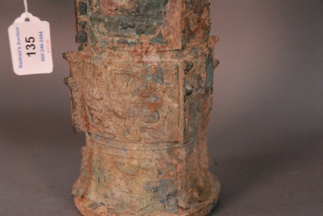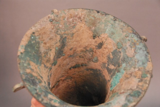 Archaic Song Dynasty bronze vessel with 2 marks on bottom