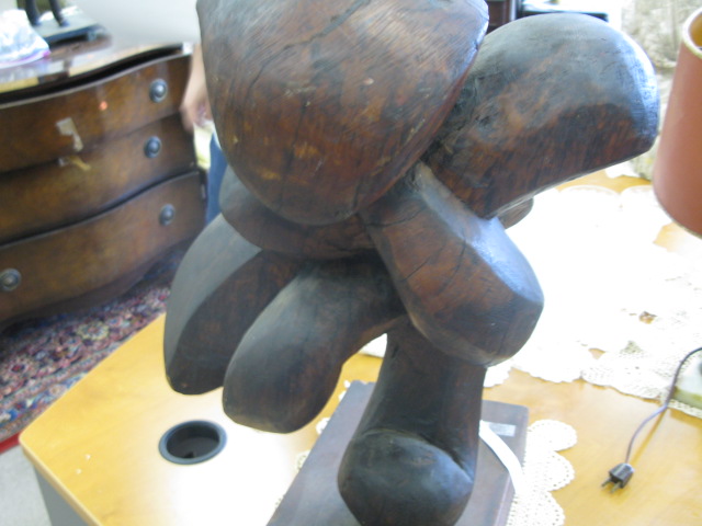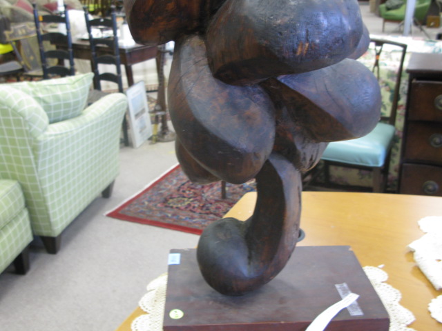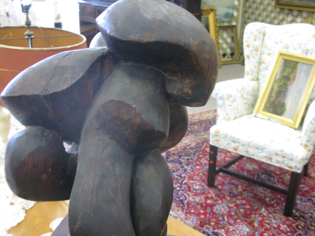 Carved wooden sculpture, Ron Mehlman.Provenance: personal collection of Sherry and Jack Kneller Alice Hart Kneller and John W. Kneller, a number of them gifts of the Brooklyn arts faculty when he was President of Brooklyn College from 1969 – 1979