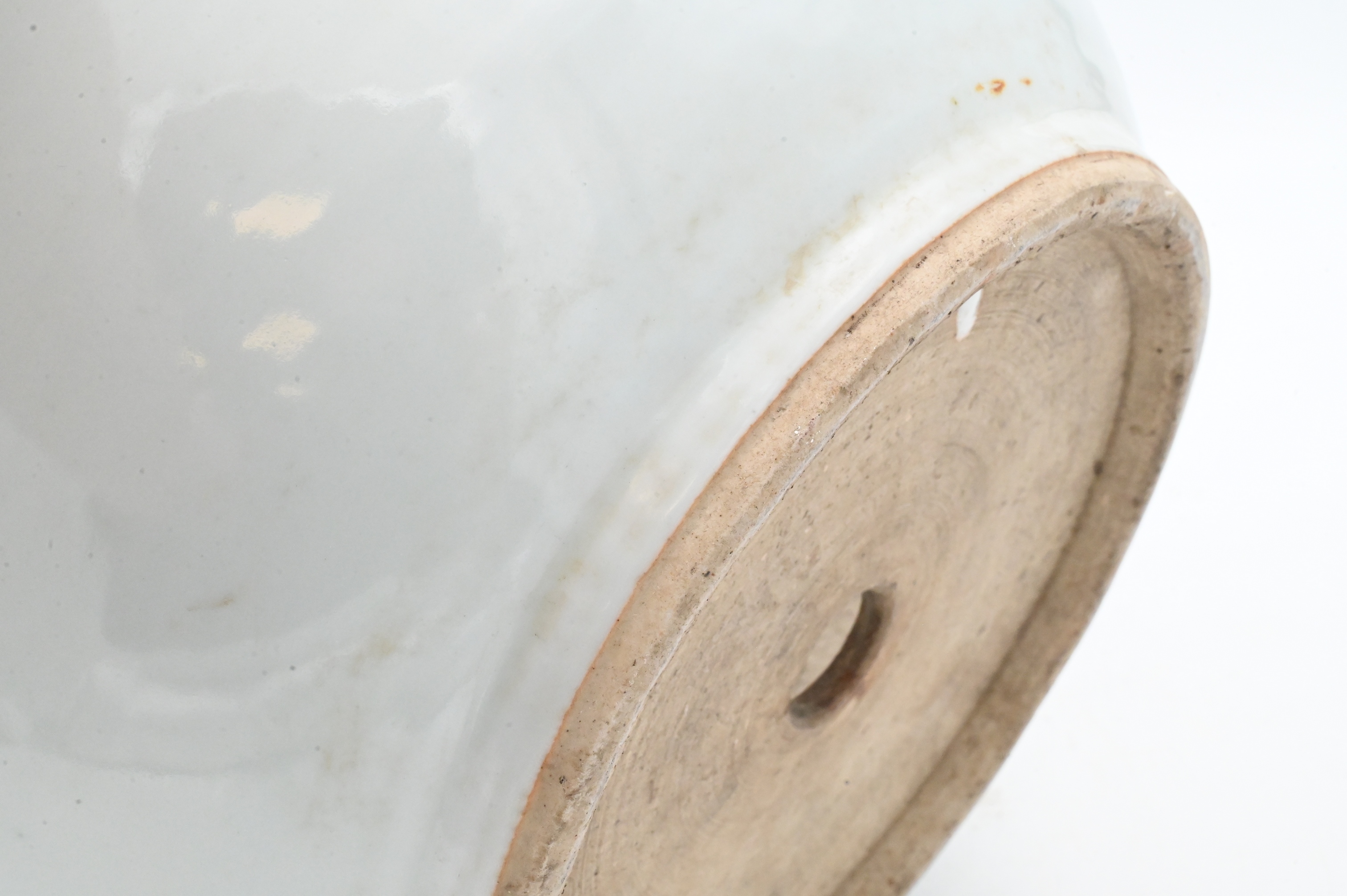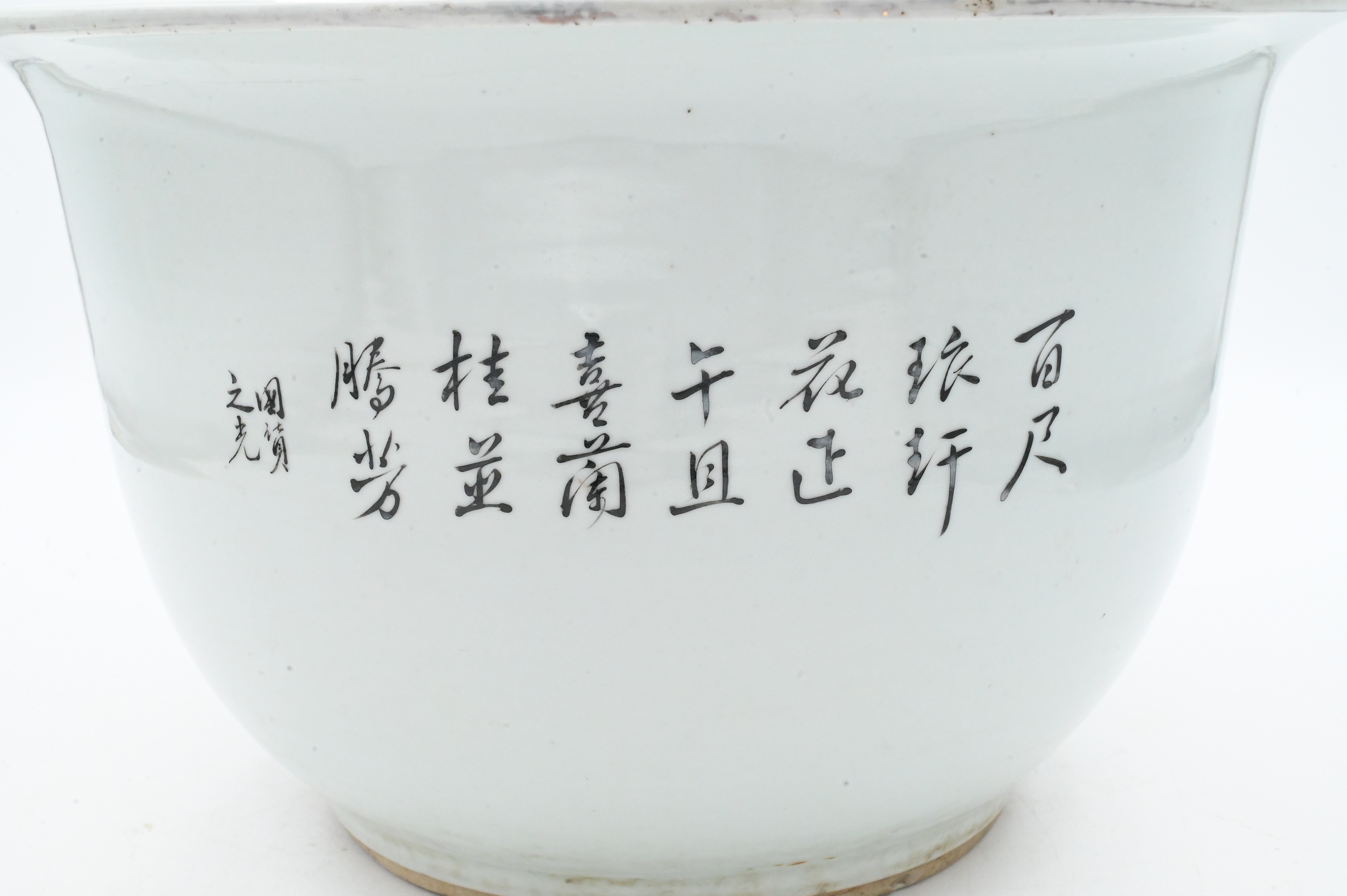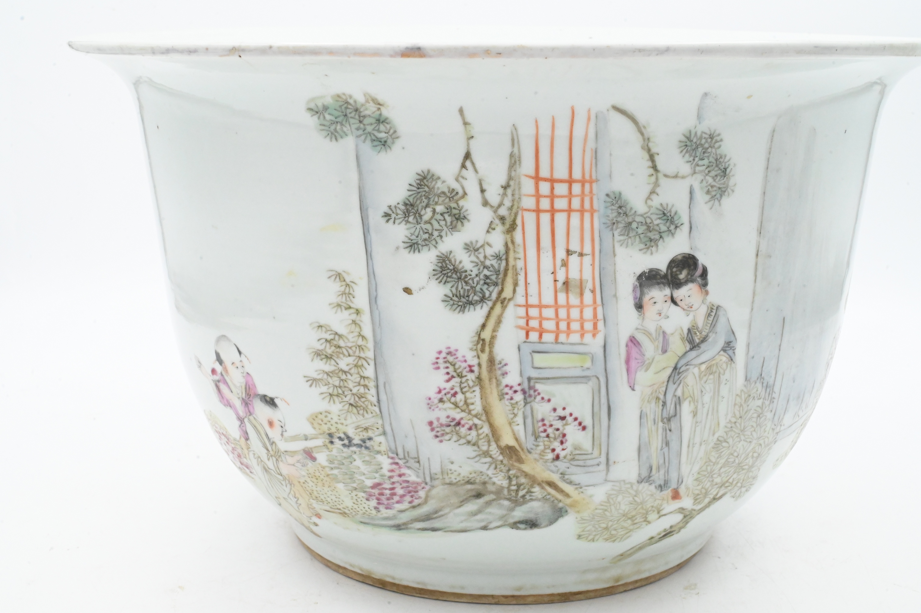 featuring geishas in a courtyard and playing boys motif with calligraphy poem, drainage hole to base