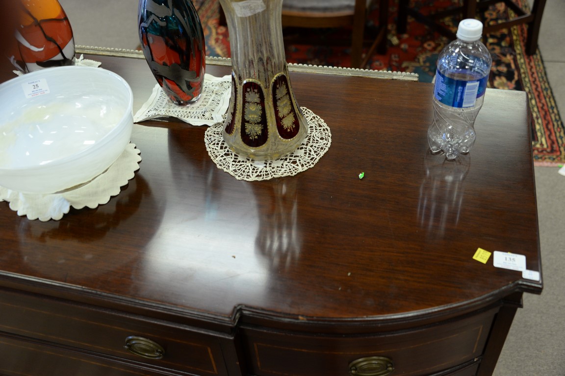 Custom mahogany inlaid buffet server. ht. 36in., wd. 58in., dp. 22in.