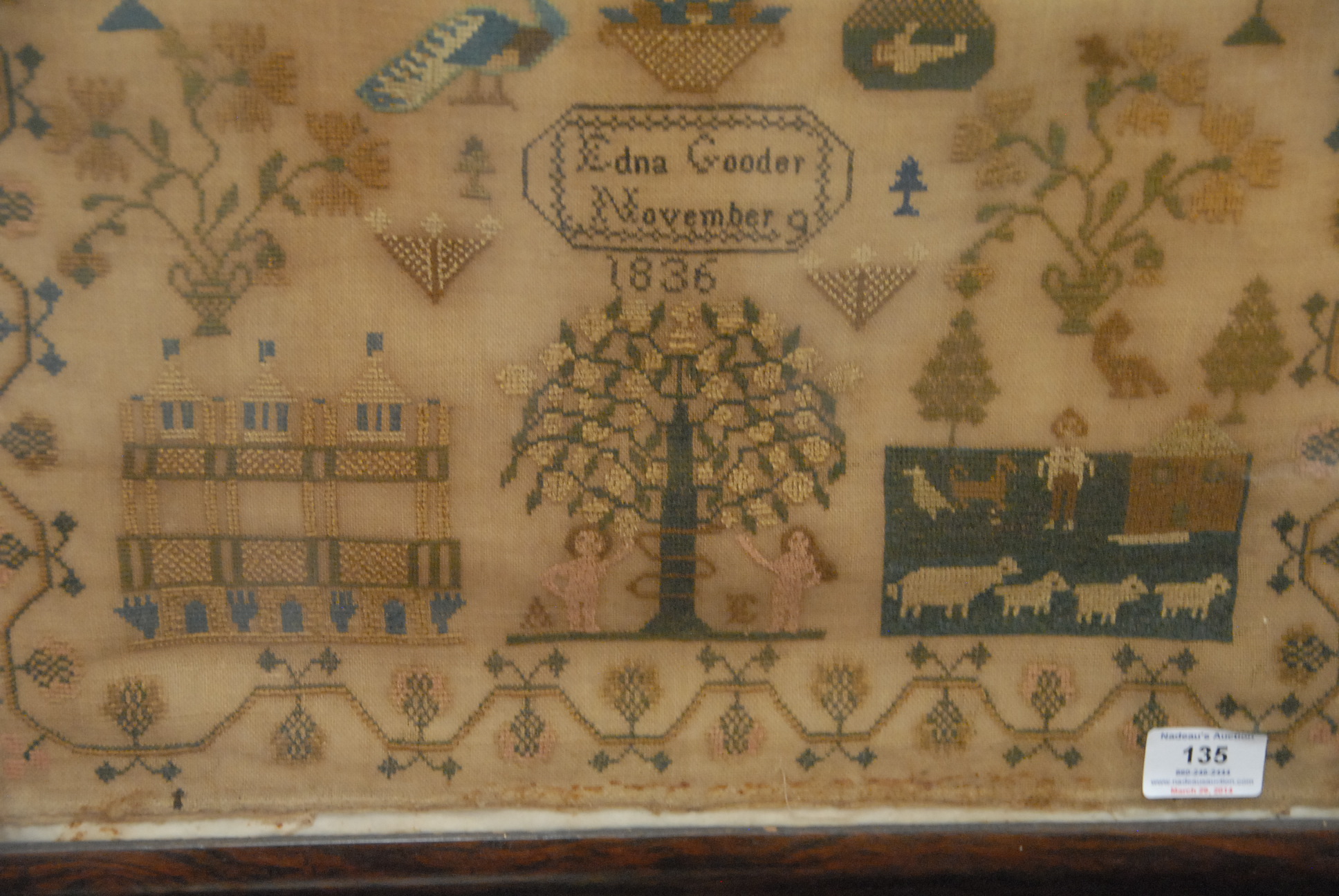 Lot 135: Large 19th century prayer sampler by Edna Gooder on November 9, 1836. 21 1/2 x 17 1/2