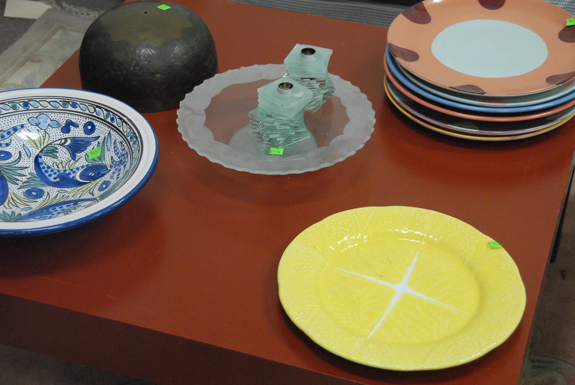 Lot 135: Large grouping of contemporary stoneware and pottery Droll Design and Studio Jeffrey to include plates, bowls, vases, and candlesti…