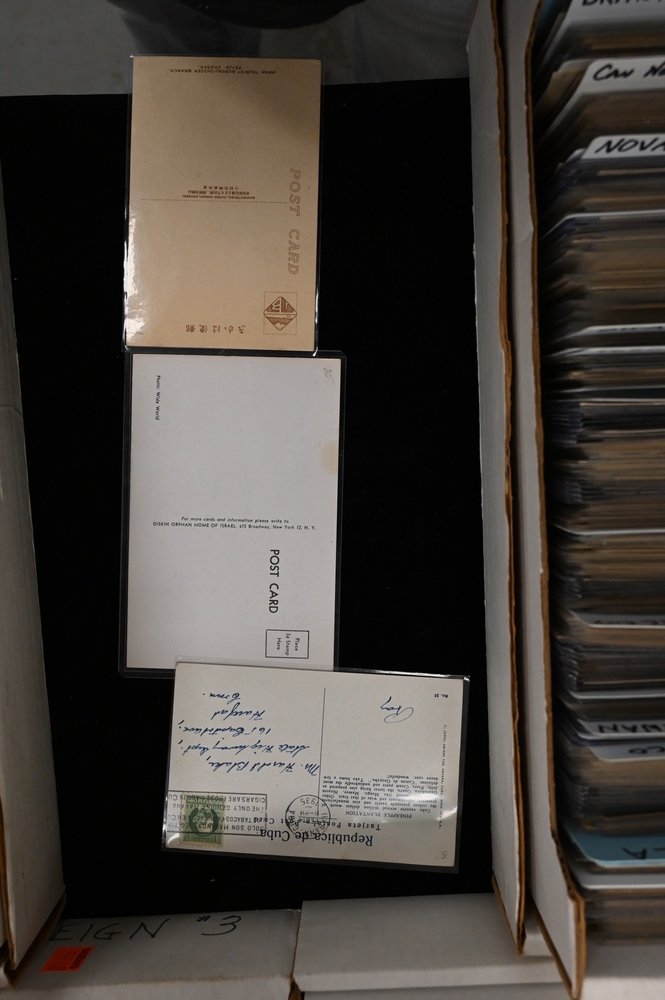 Large Lot of Foreign Postcards in Boxes, from around the world including Israel, Korea, Cuba, etc.