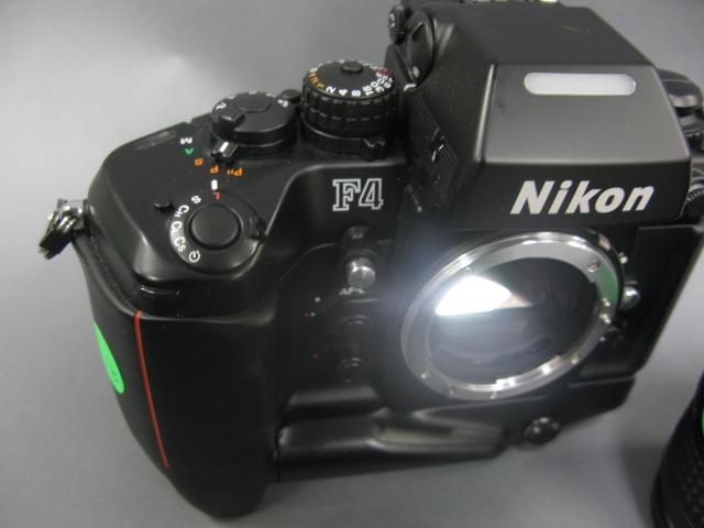 Lot to include: 1 Nikon F4 film camera body with MB-21 power pack, in excellent condition 2 Nikon MC-12 remote cord 3 Nikon AF Nikkor 35-70 f 2.8 auto focus lens, in good condition and 4 Nikon AF Micro Nikkor 60 mm f 2.8 auto focus lens, in good condition.