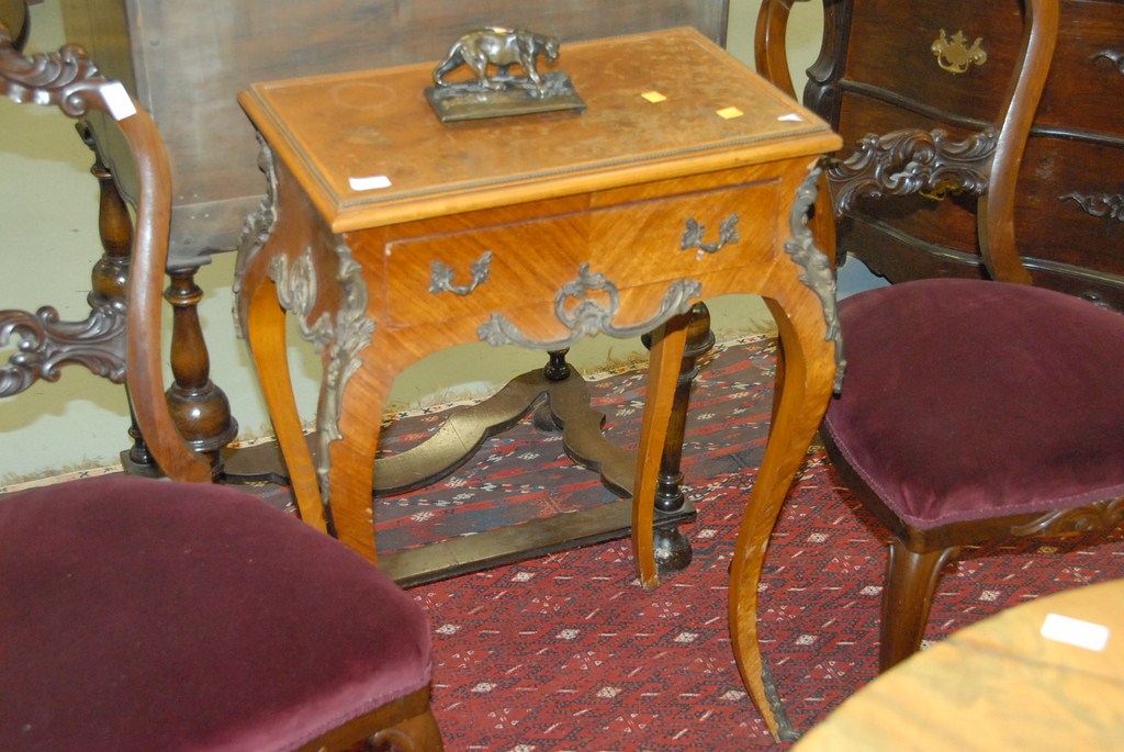 Louis XV style reproduction table with drawer, ht. 30, top: 12 1/2 x 20.