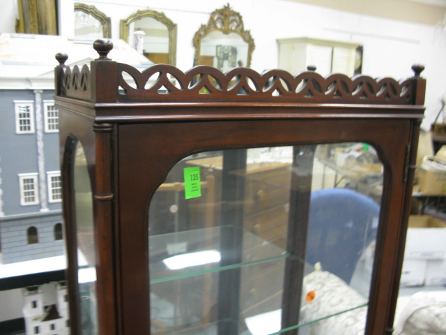 Lot 135: Mahogany curio cabinet with glass shelves.