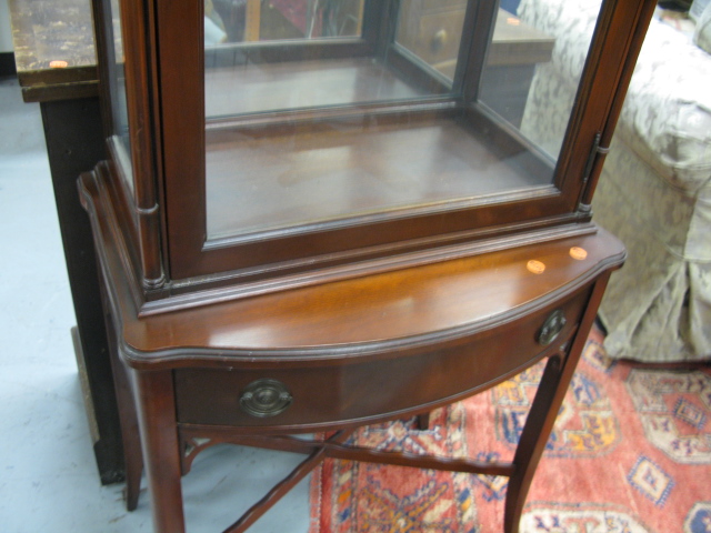 Mahogany curio cabinet with glass shelves.