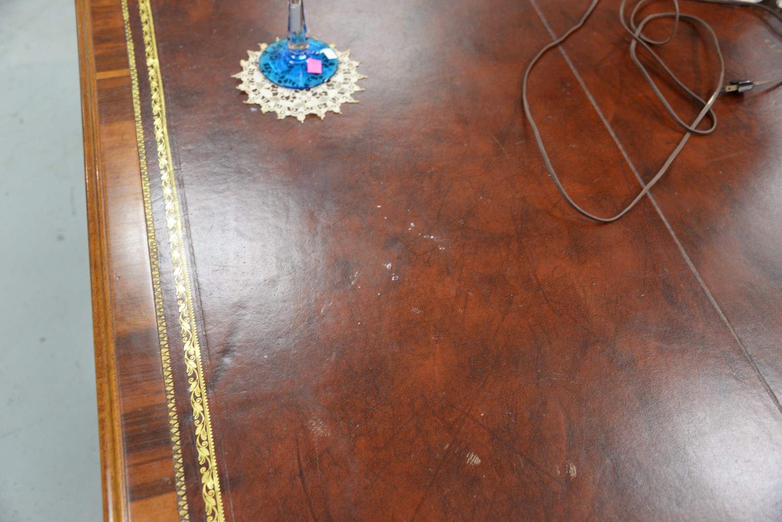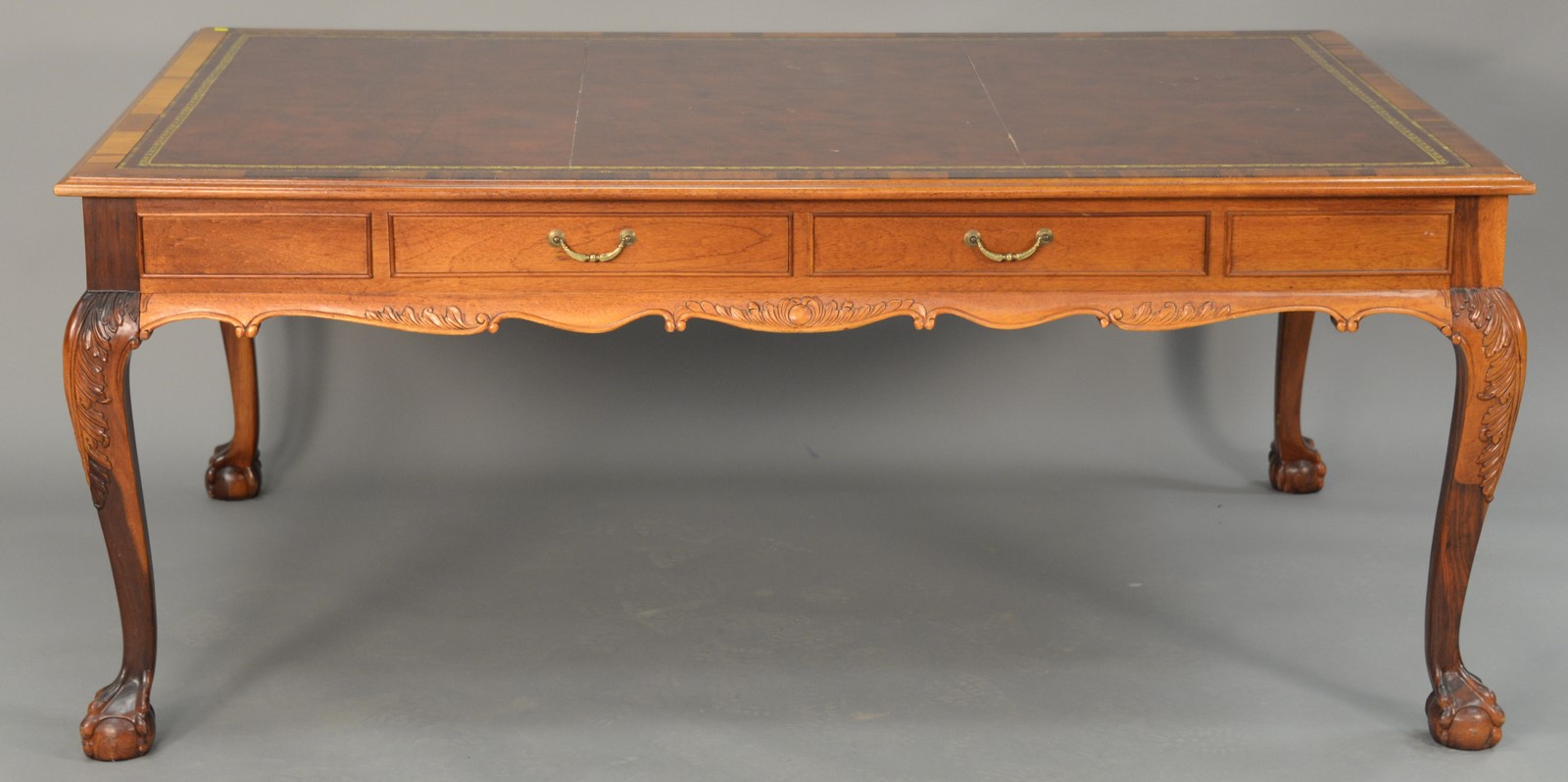 Mahogany library/computer table with leather top and ball and claw feet. ht. 30 in. top: 48 x 72