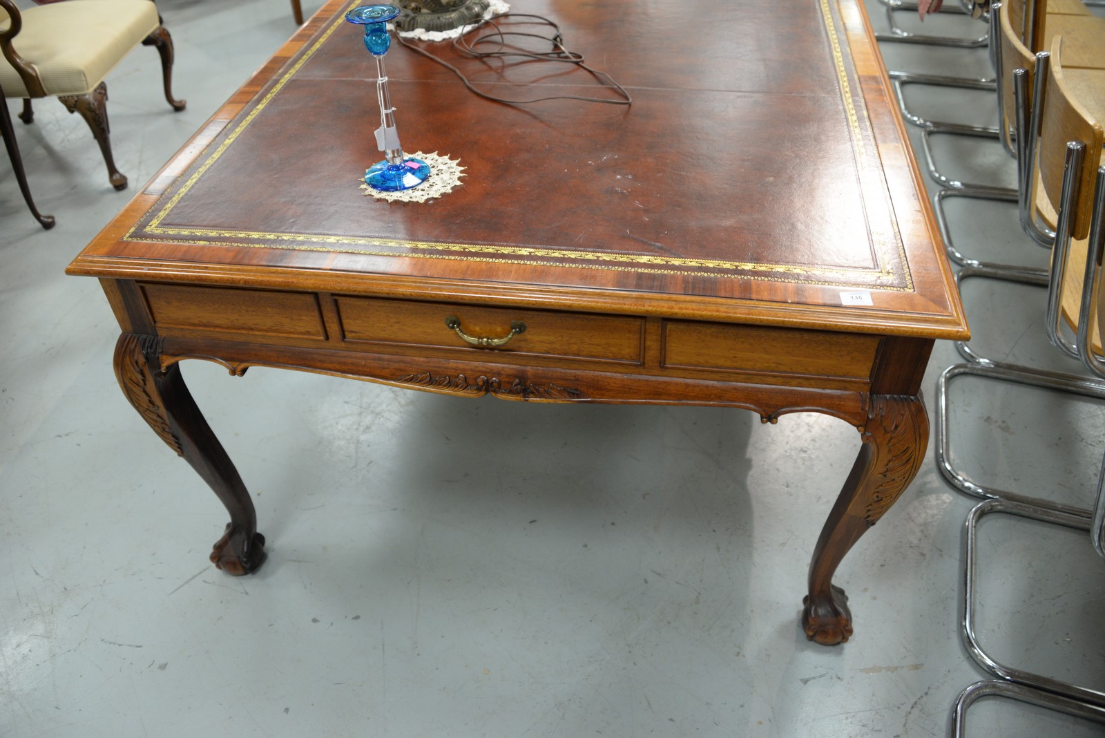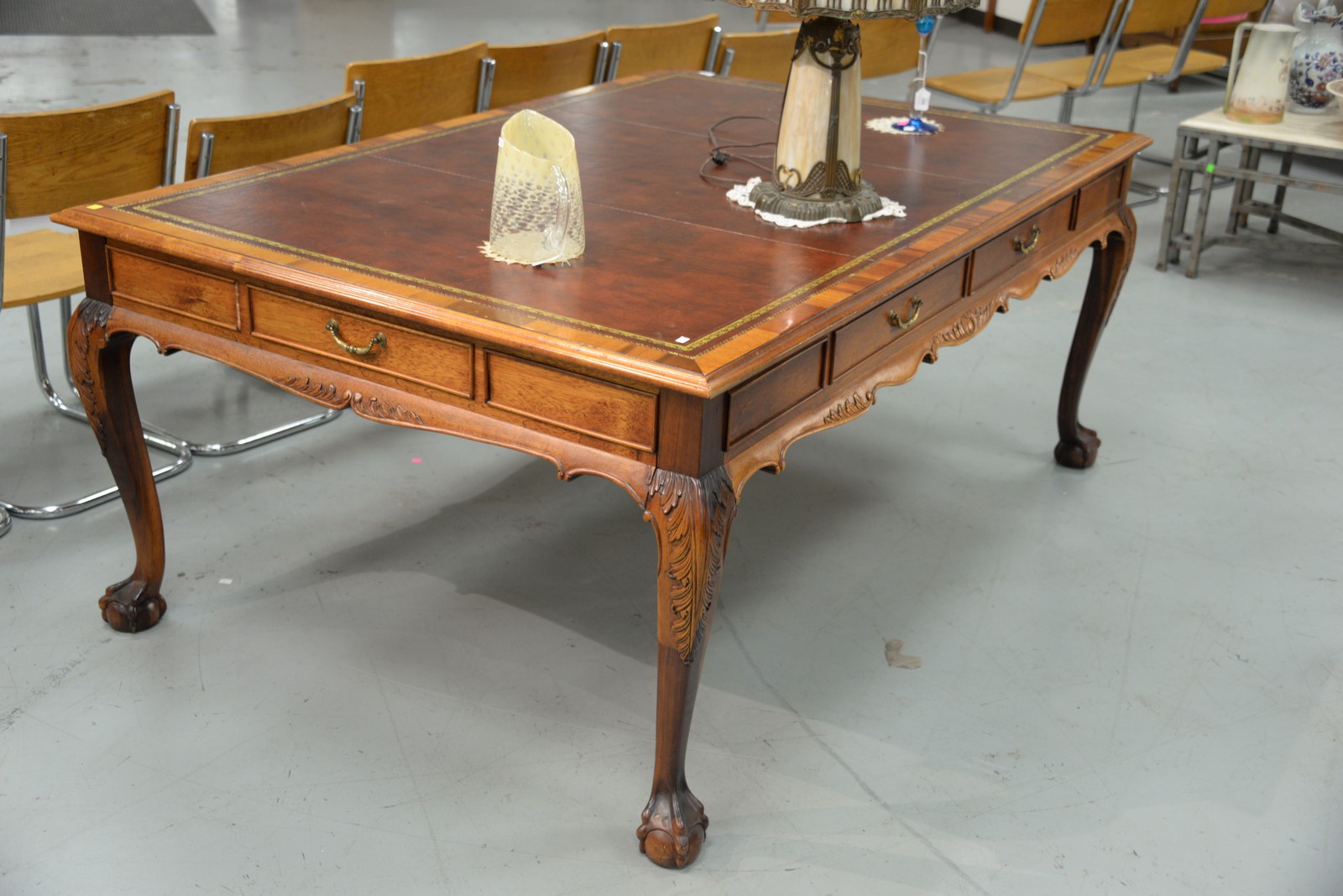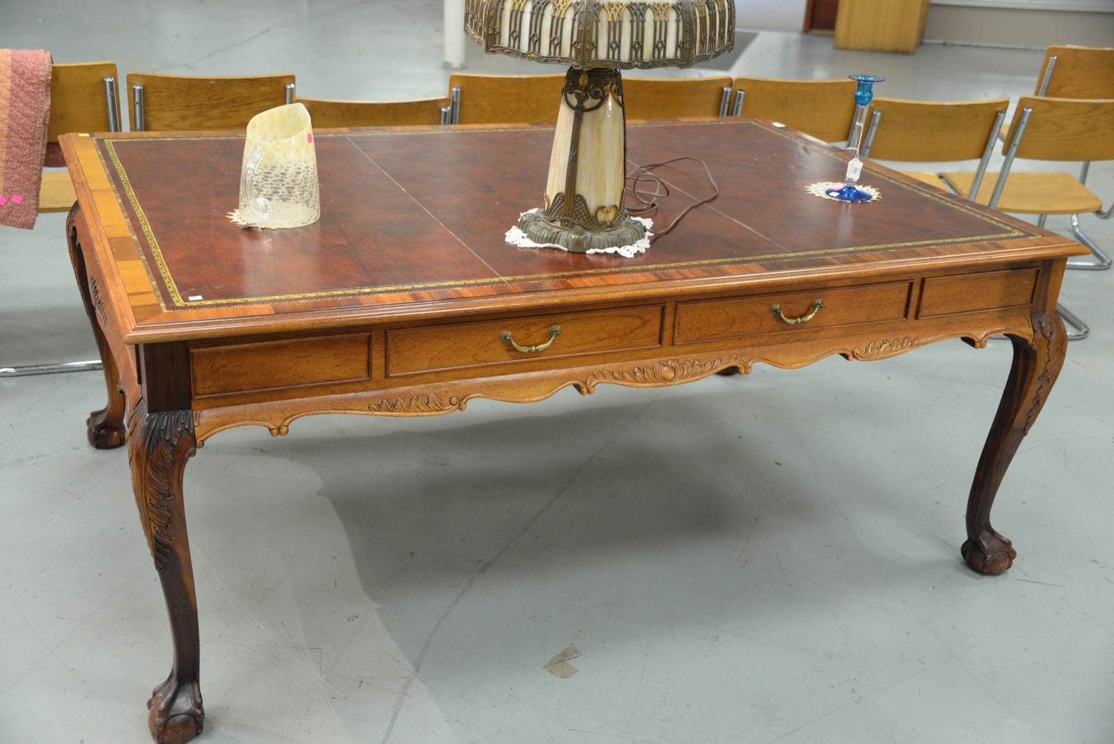 Lot 135: Mahogany library/computer table with leather top and ball and claw feet.ht. 30 in. top: 48 x 72