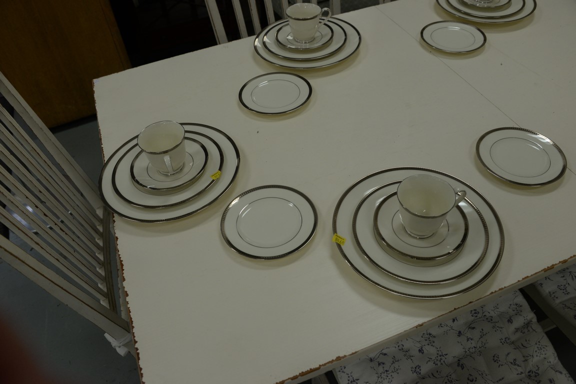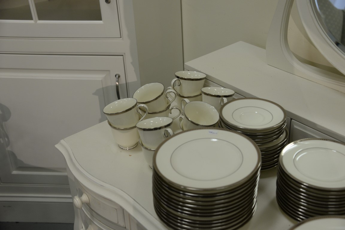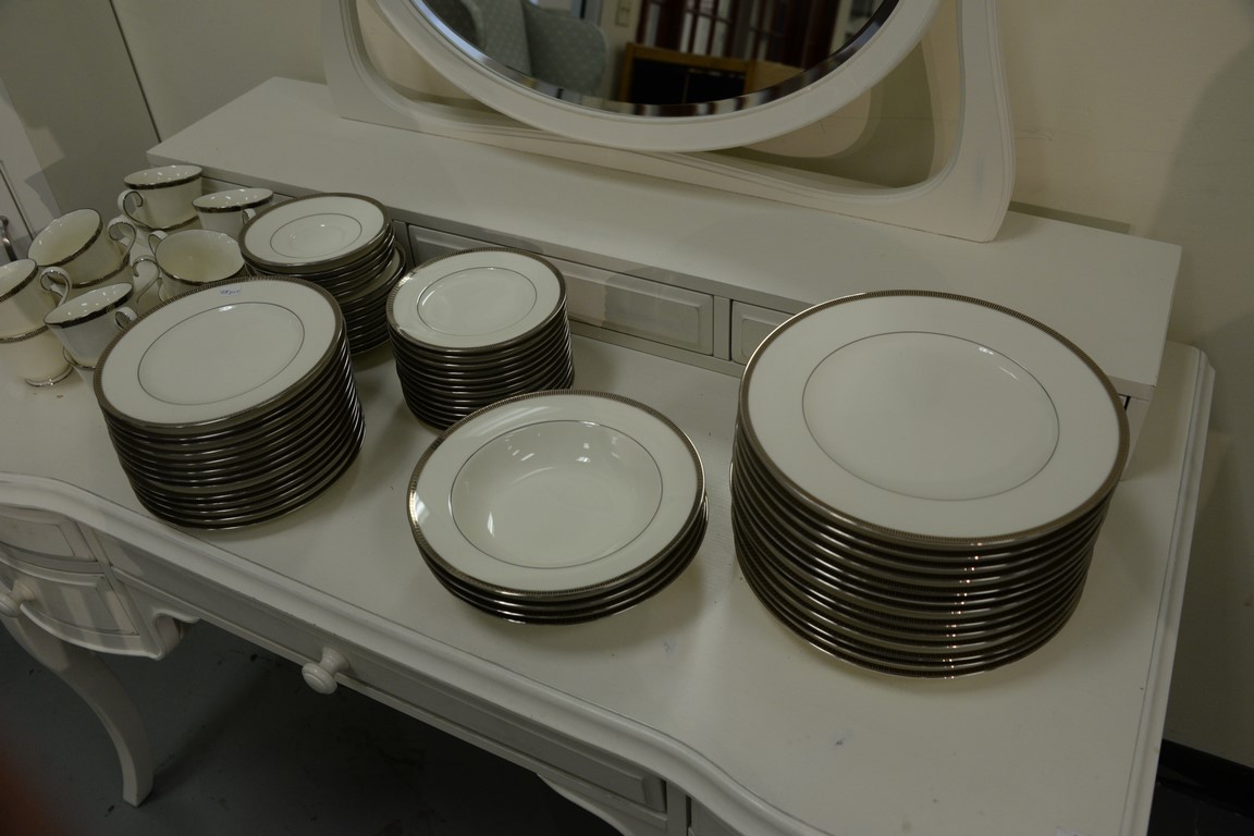 Lot 135: Noritake Sorrento Platinum dinnerware set, setting for twelve, 98 total pieces. Provenance: Estate of Arthur C. Pinto, MD