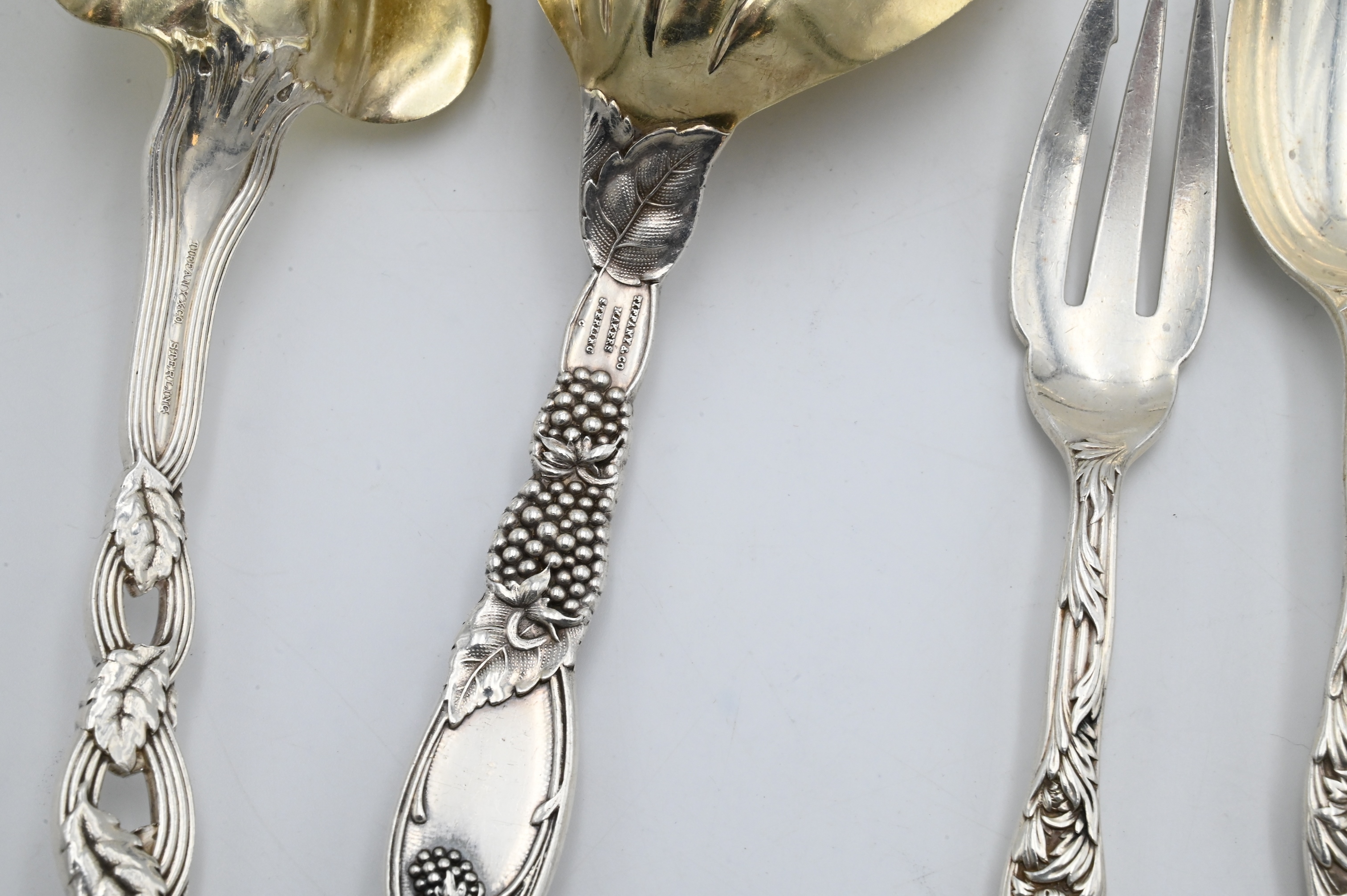 Lot 135: Six Piece Tiffany Sterling Silver Serving Pieces and Flatware Set