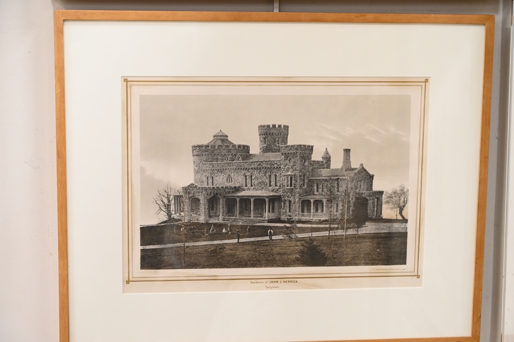 Three Piece Lot of Austin Augustus Turner (American, 1831 – 1870), photo lithographs of houses, to include “Woodcliff, Residence of A.C. Richards, Fort Washington, 1860”, and “Residence of John J. Herrick, Tarrytown”, all housed in matching frames, image size 11 x 15 3/4 inches.