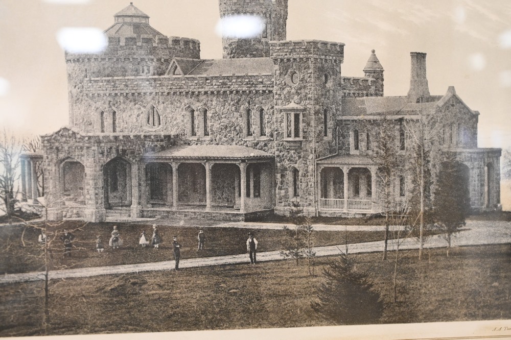 Lot 135: Three Piece Lot of Austin Augustus Turner (American, 1831 – 1870), photo lithographs of houses, to include “Woodcliff, Residence of A.C. Richards, Fort Washington, 1860”, and “Residence of John J. Herrick, Tarrytown”, all housed in matching frames, image size 11 x 15 3/4 inches.