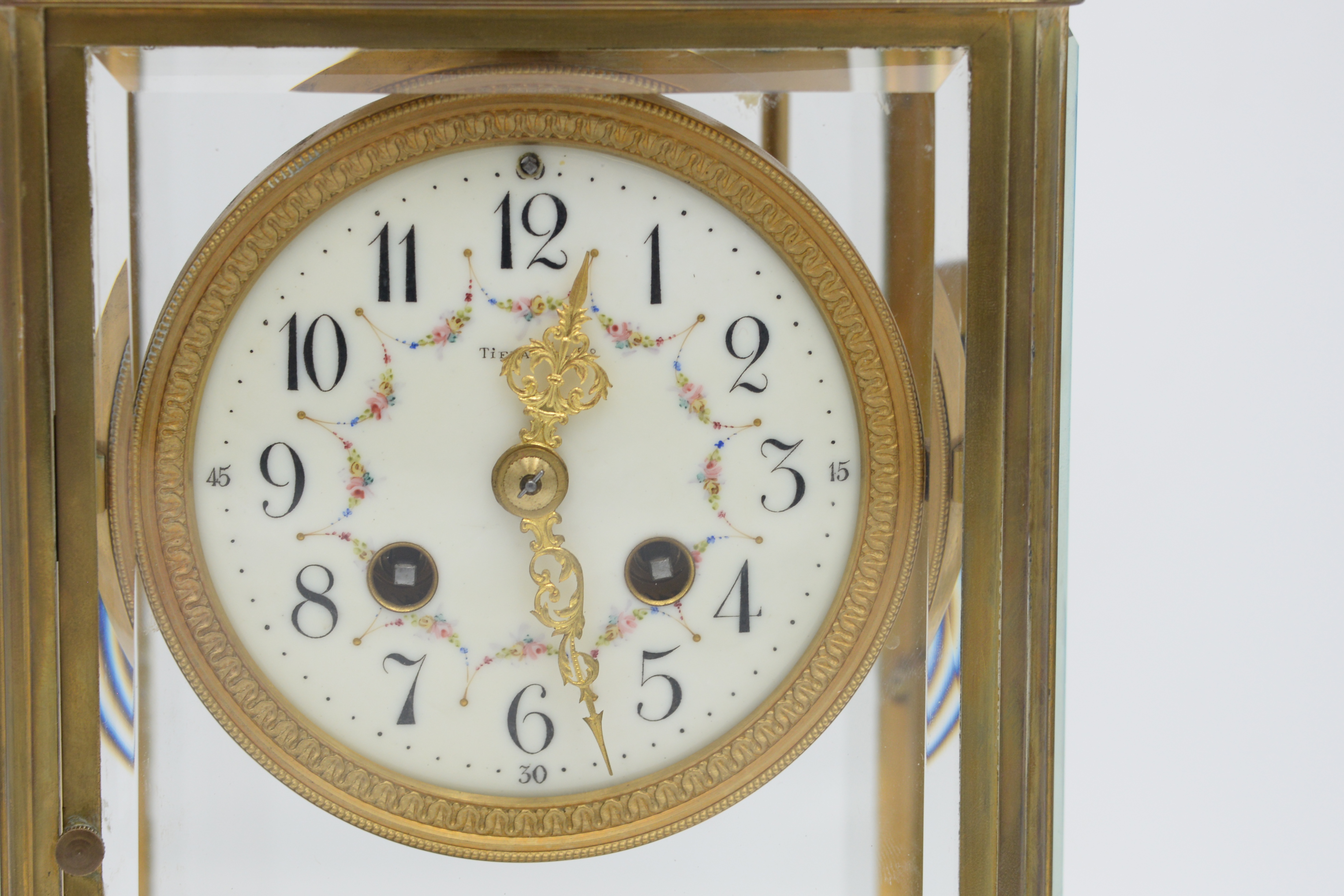Tiffany Brass and Crystal Regulator, with keys, height 11 3/4 inches