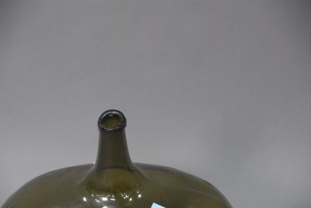 Early blown glass bottle, ht. 17in. wd. 16in. Provenance: Estate of Judy Gengras McDonough of West Hartford, CT.
