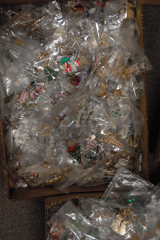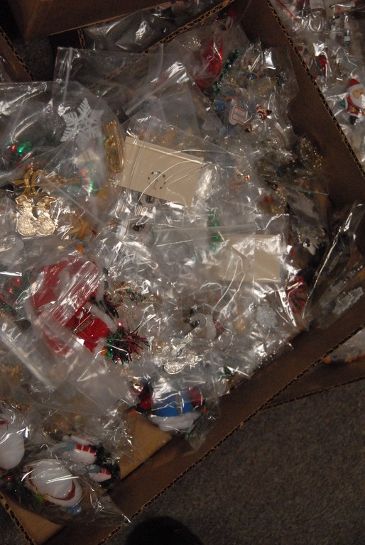 Five large boxes of Christmas and miscellaneous type jewelry, new.