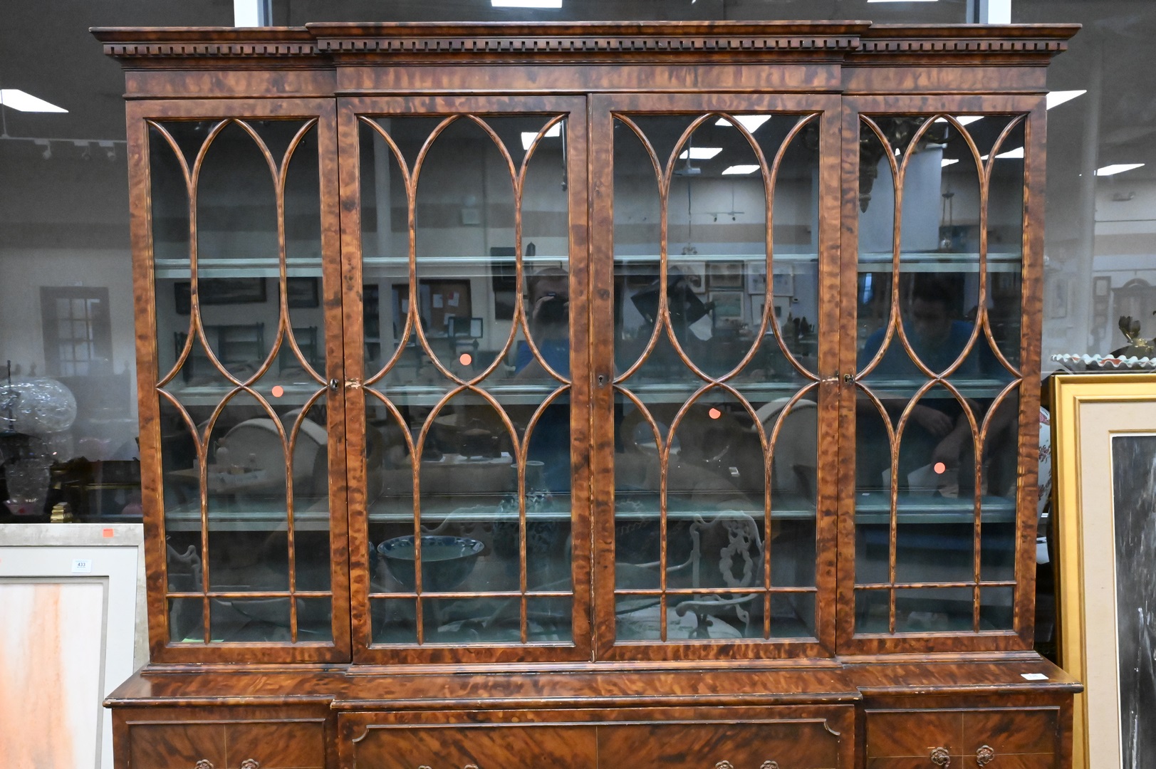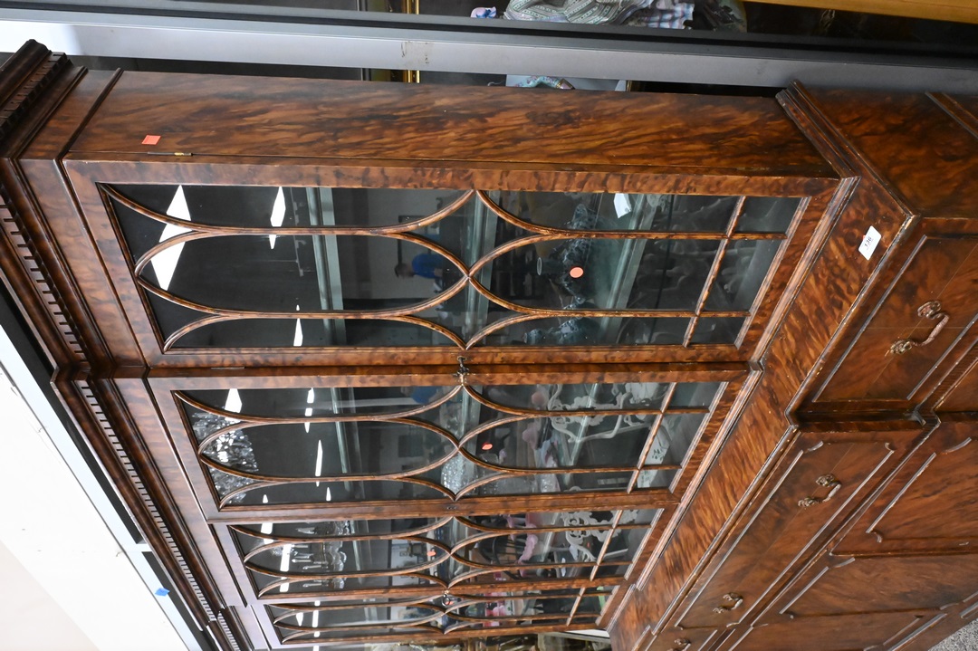 Grain Painted Two-Part China Cabinet, top having four doors over base having three drawers, over four drawers, height 82 inches, width 65 inches, depth 16 inches. Provenance: Estate of Peter Tillou, Litchfield, Connecticut.
