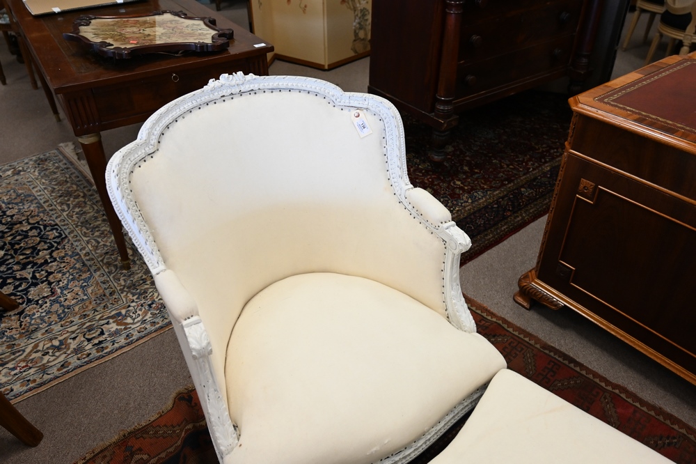 Louis XVI Style Three Part Lounge, in need of upholstery, height 34 inches, total length 76 inches.