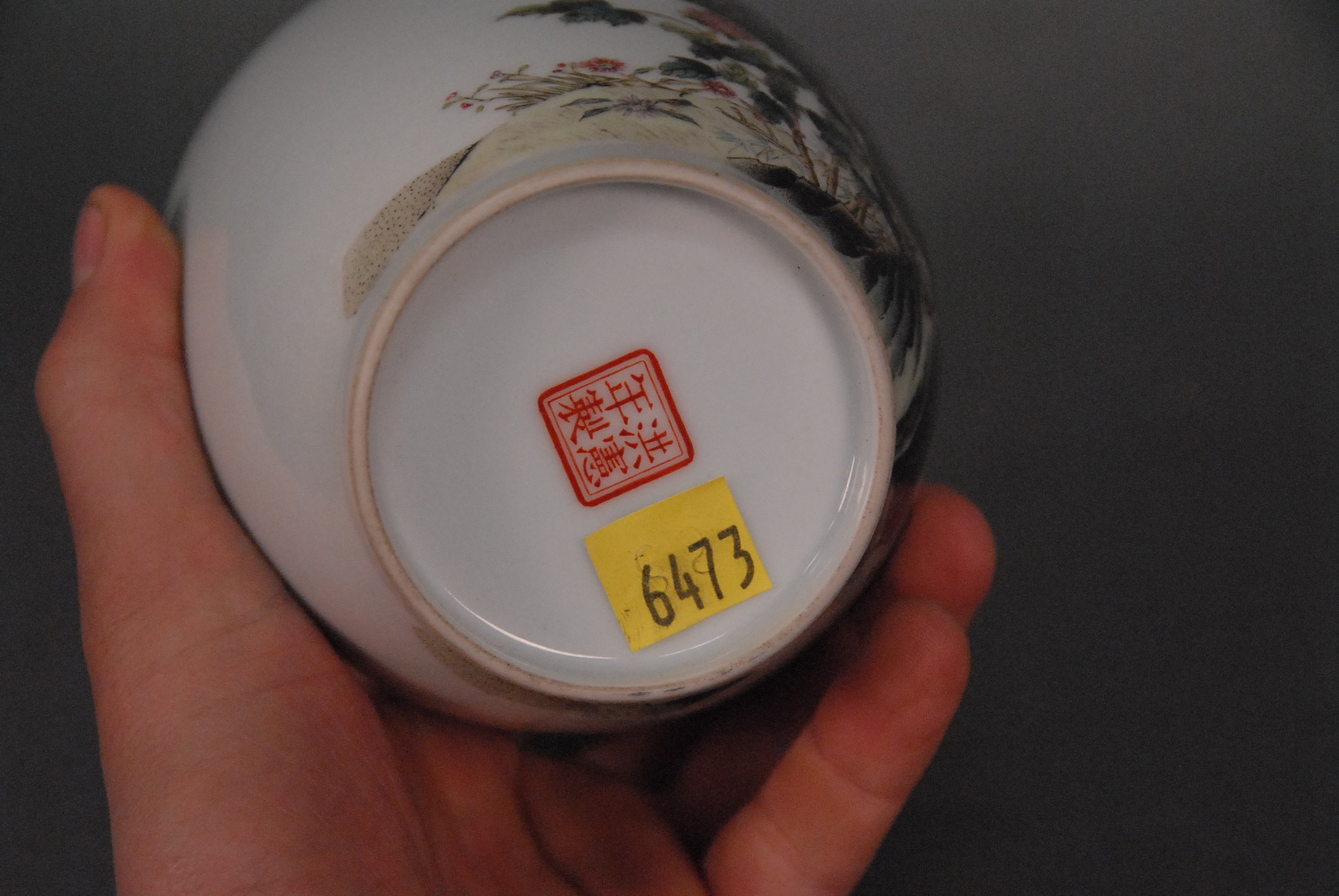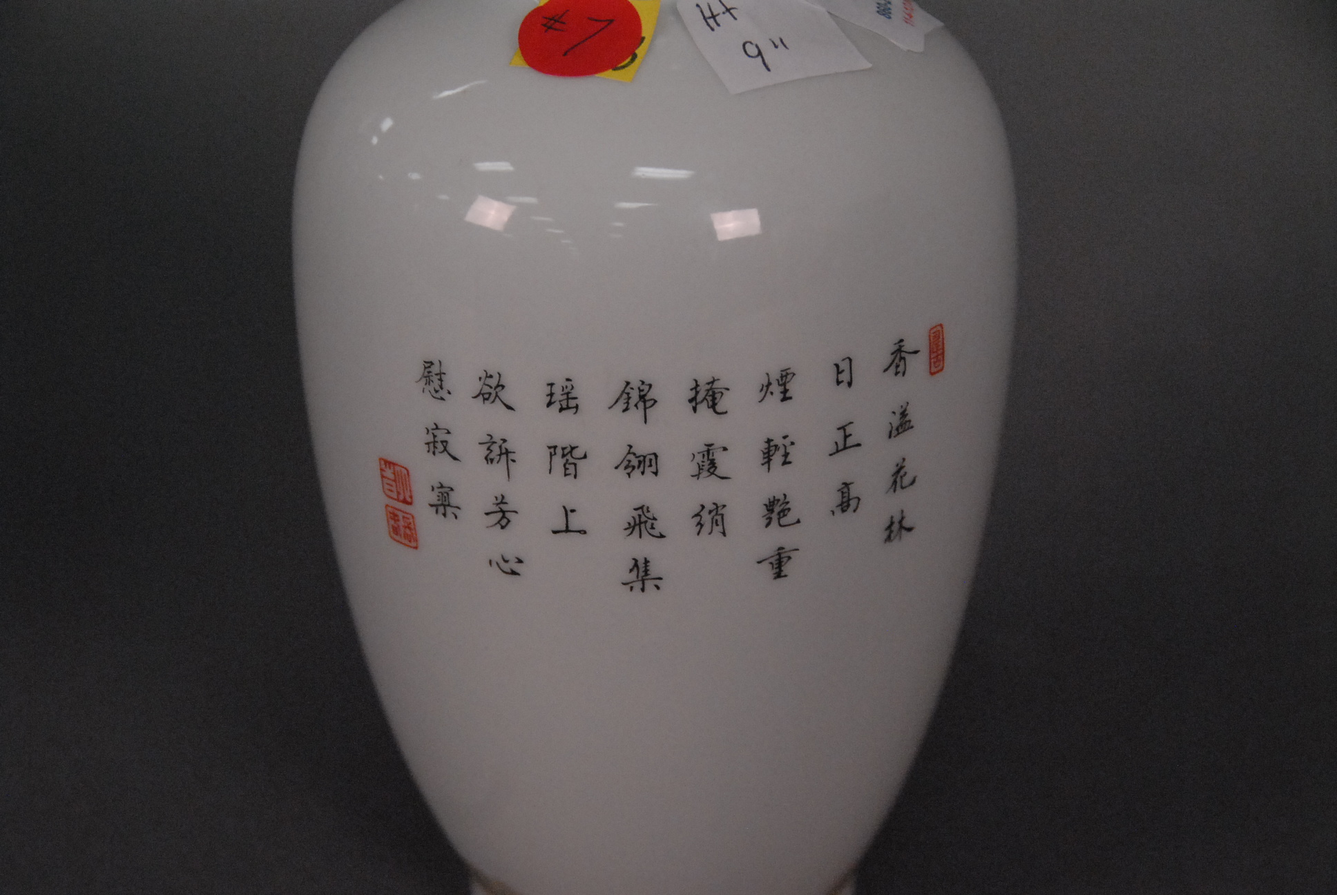 Republic period vase with flowers and birds and four character marks on bottom, ht. 9in.