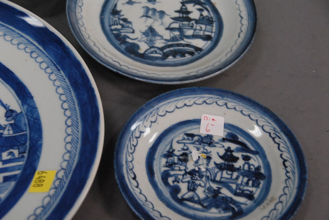 Six piece lot one round platter, two bowls, and three small plates. Provenance: Estate of Judy McDonough Gengras of Stoner Drive, West Hartford, Connecticut.