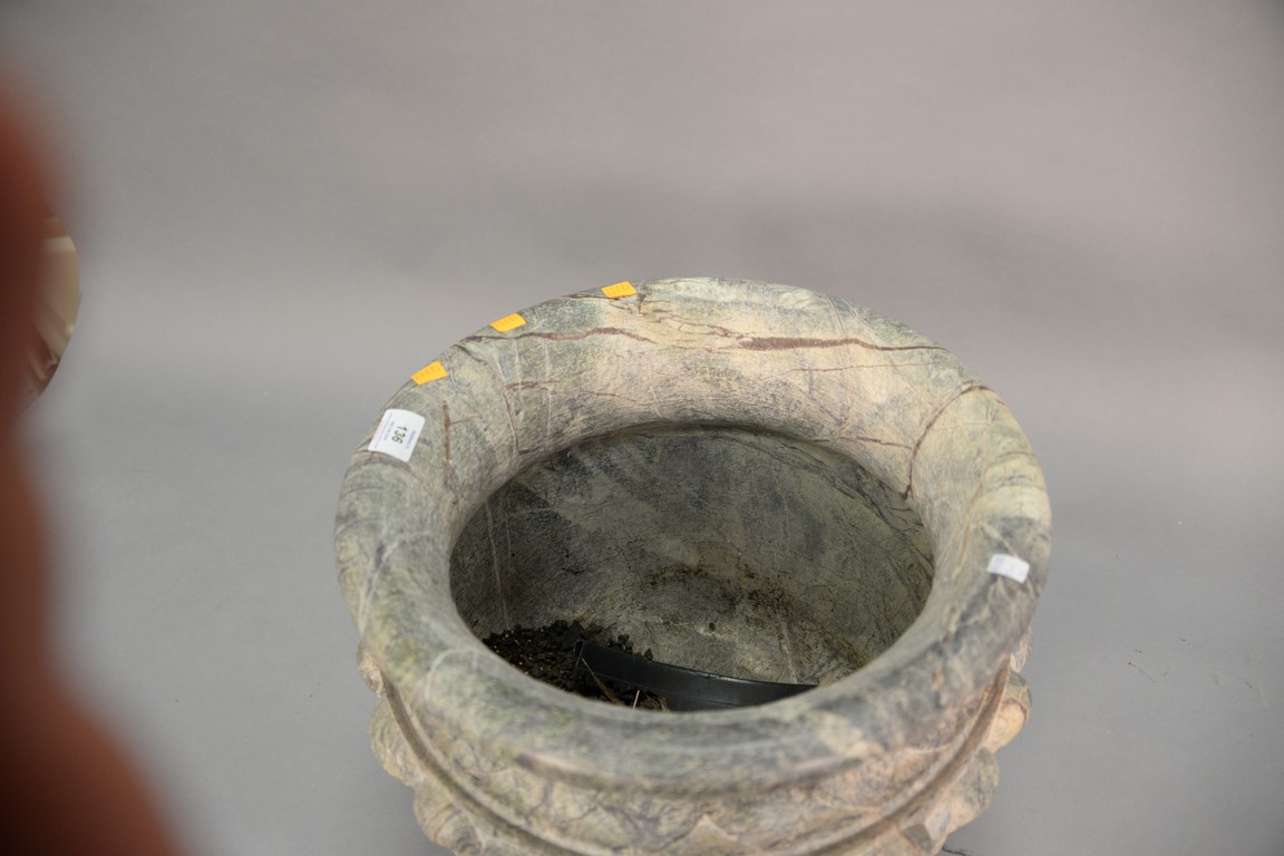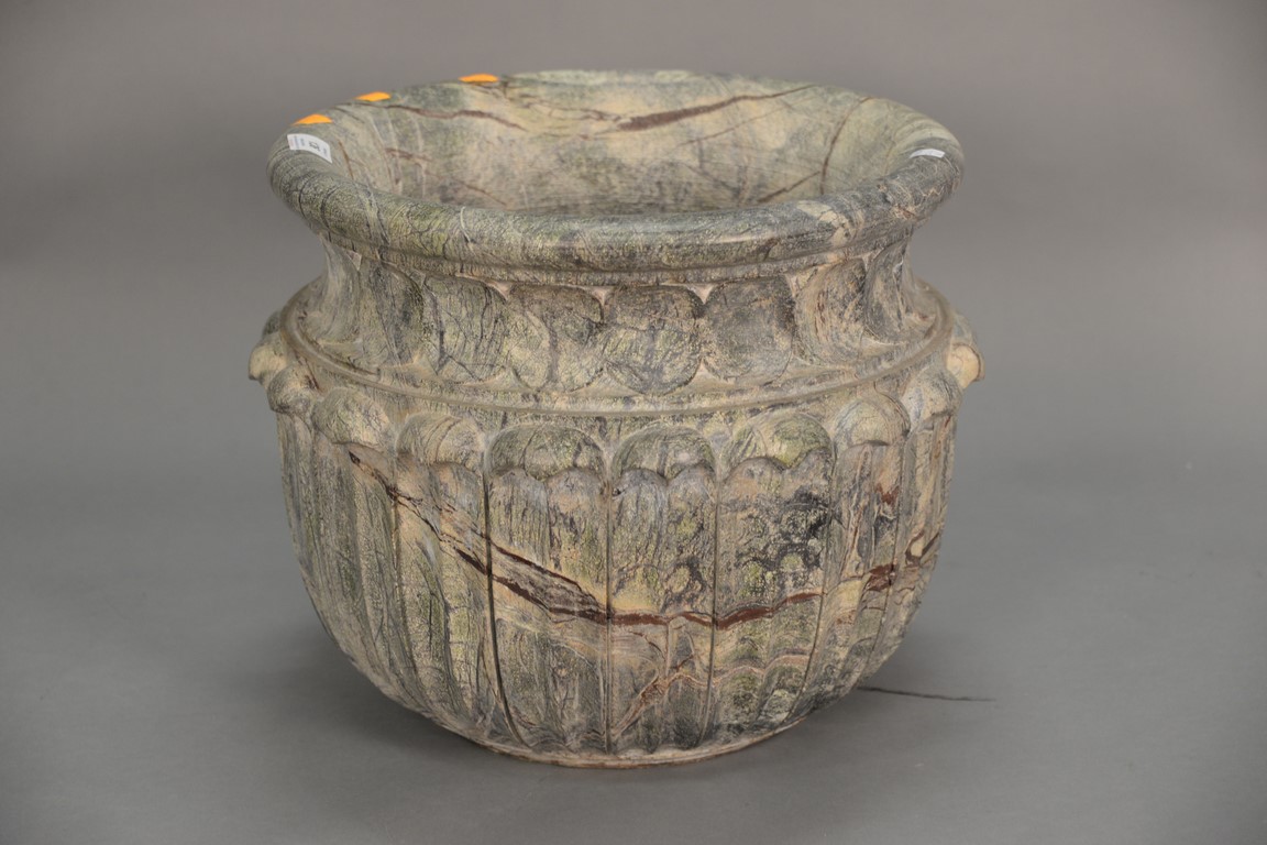 Stone jardiniere, ht. 13 1/2 in. dia. 16 in.