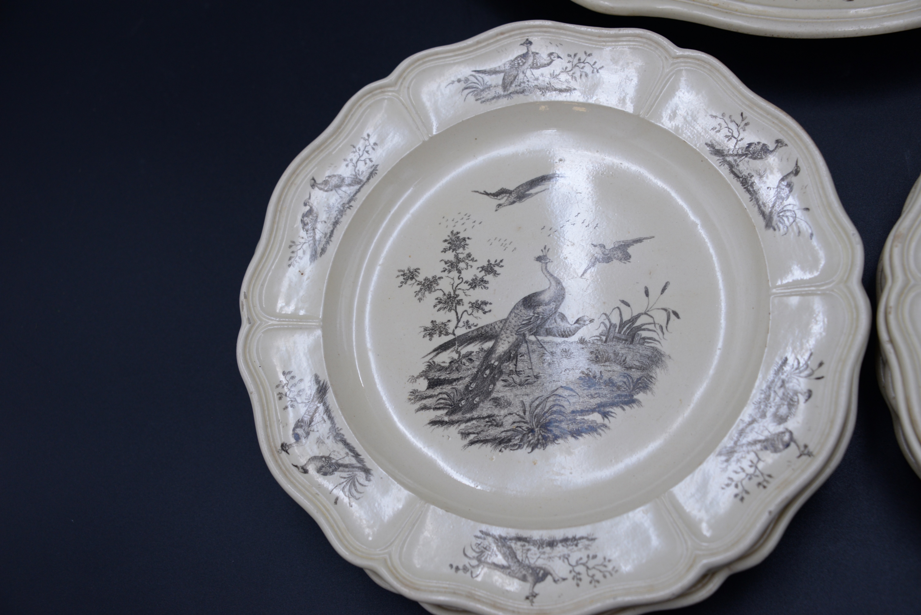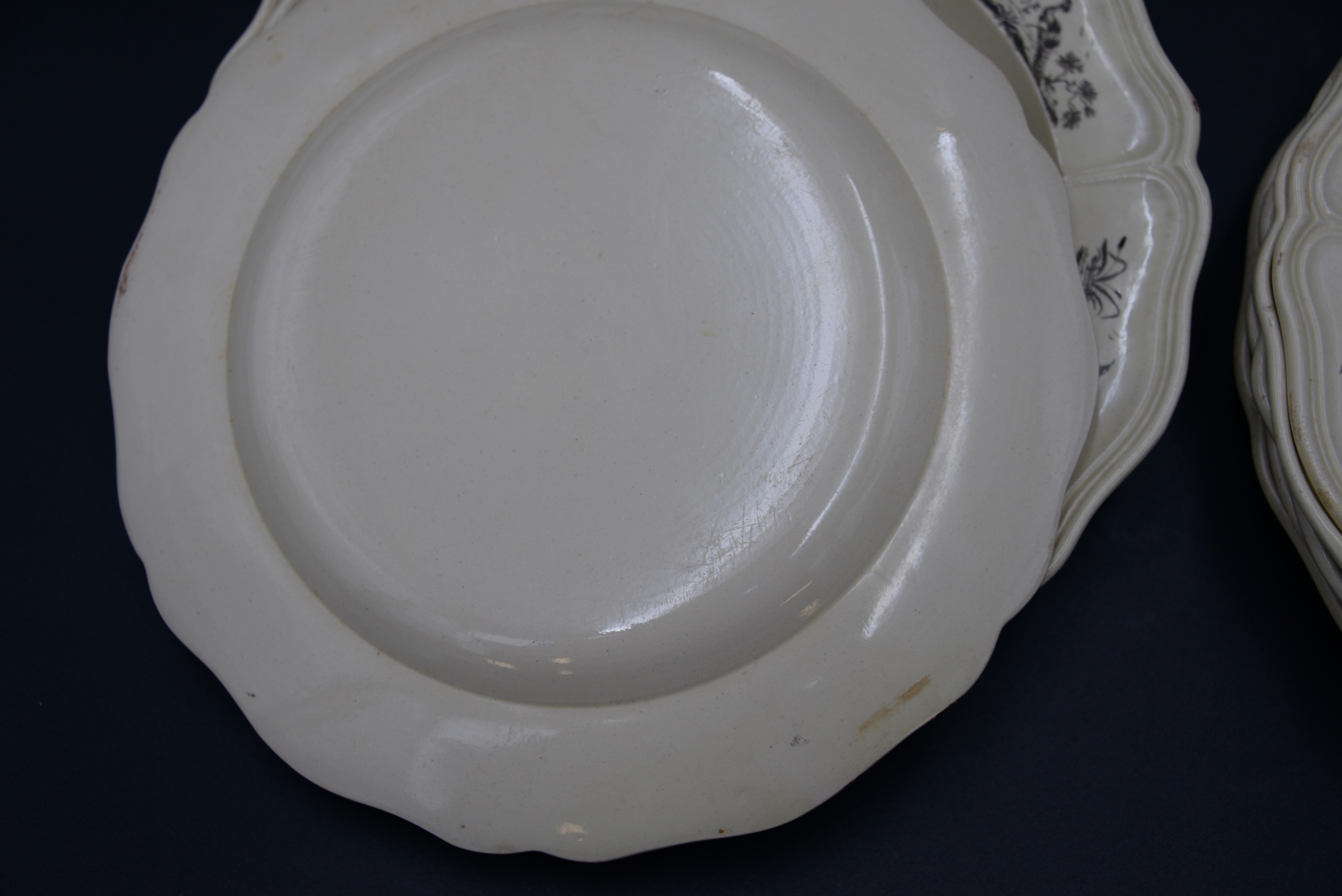 Lot 137: 11 Piece Set of Transfer Decorated Creamware Plates and a Matching Oval Platter