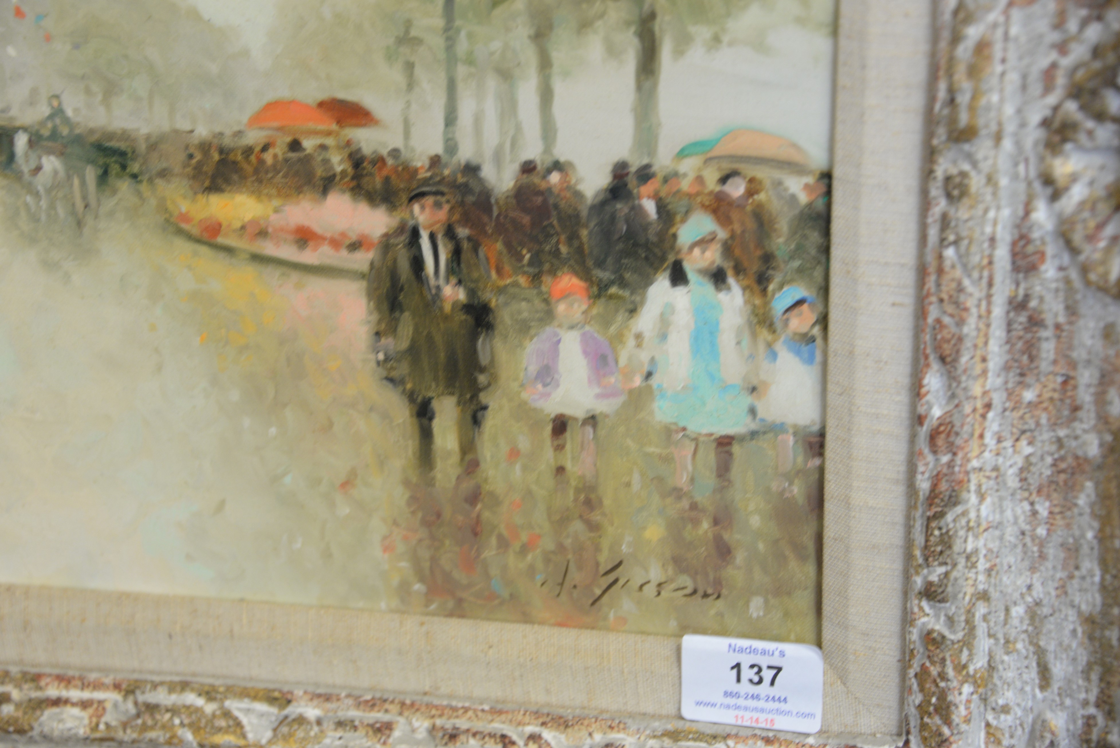 Lot 137: Andre Gisson 1921-2003 oil on canvas Paris Streets, signed lower right A. Gisson 1921-2003, 12 x 16.