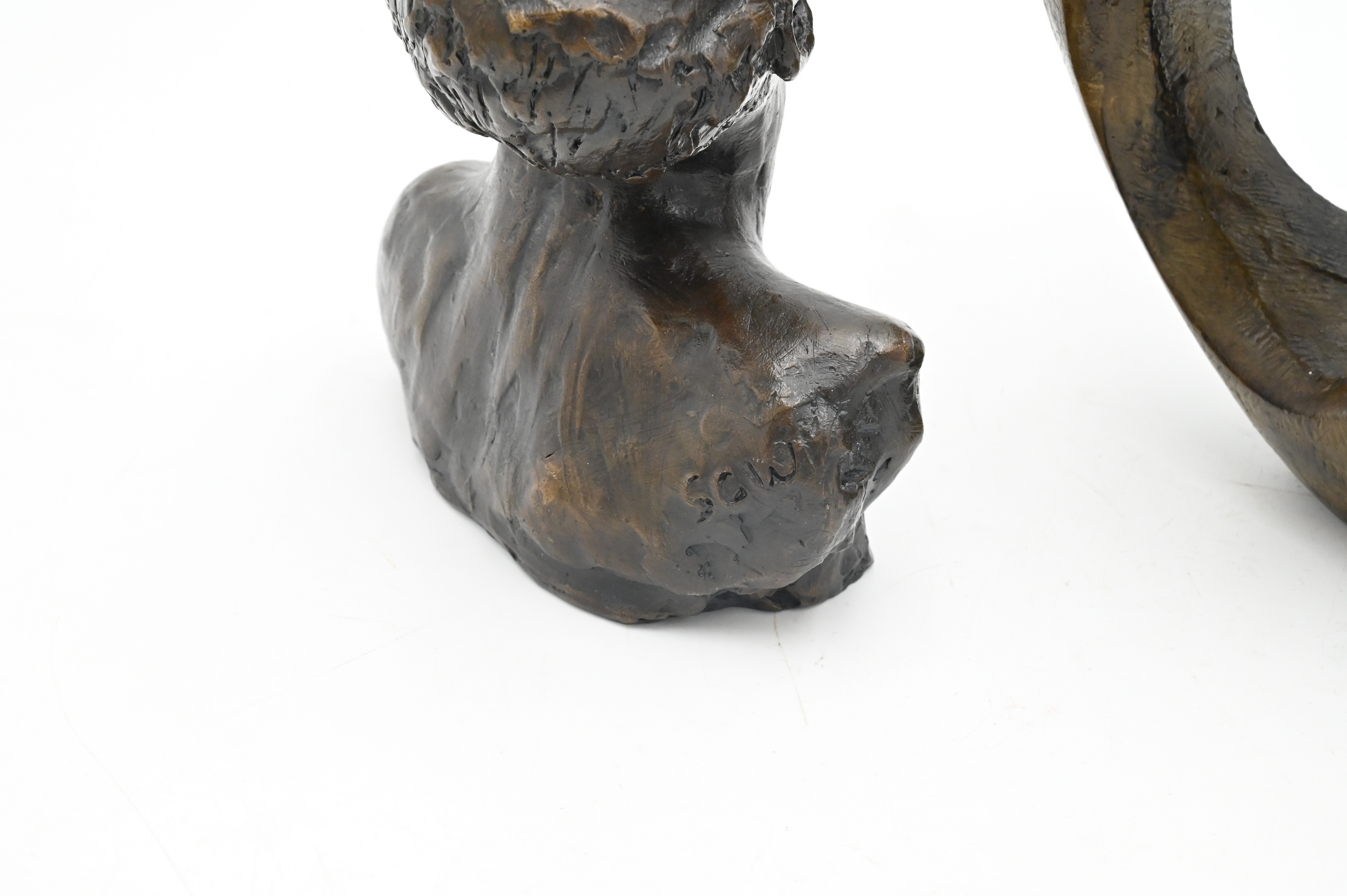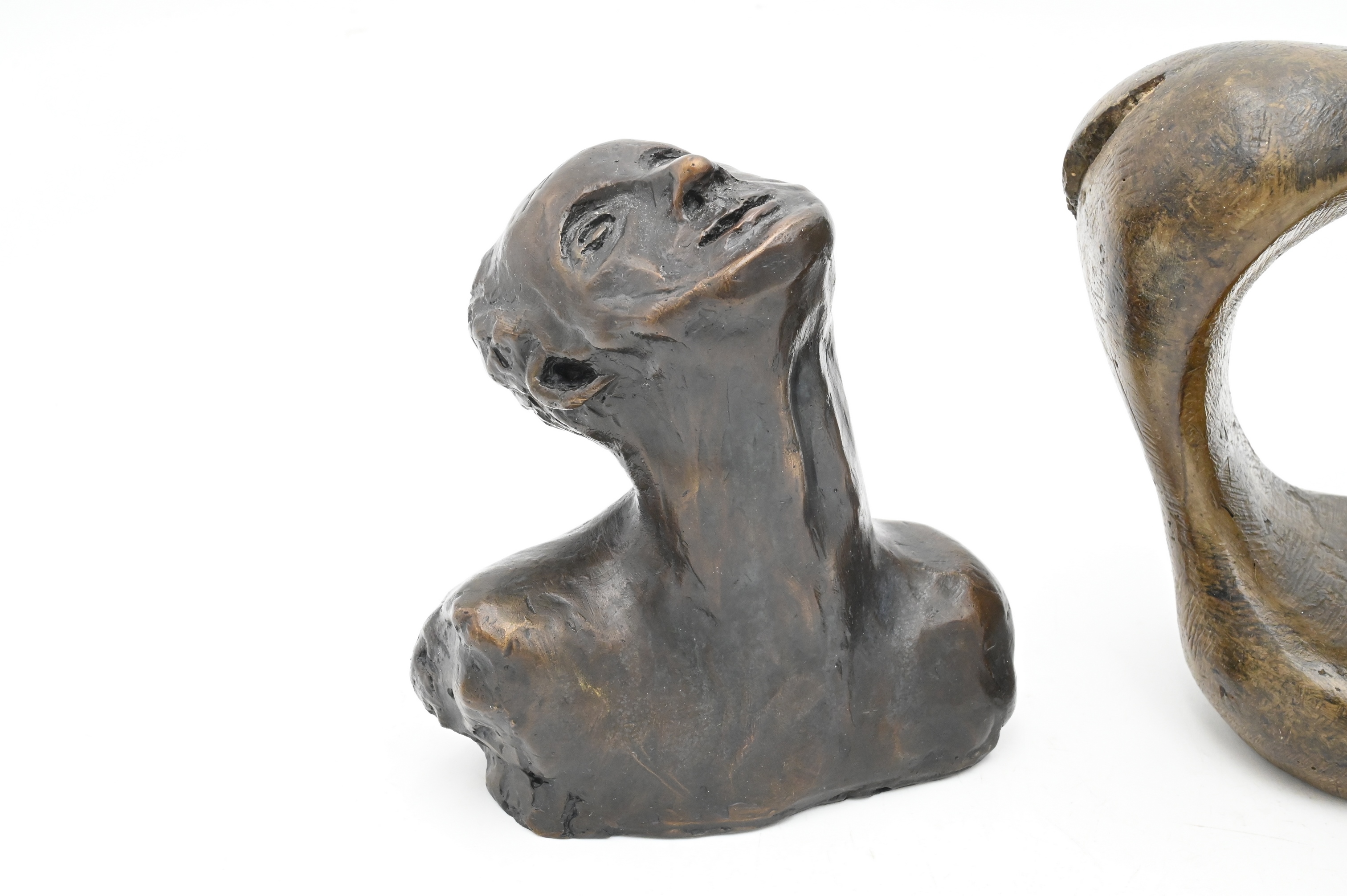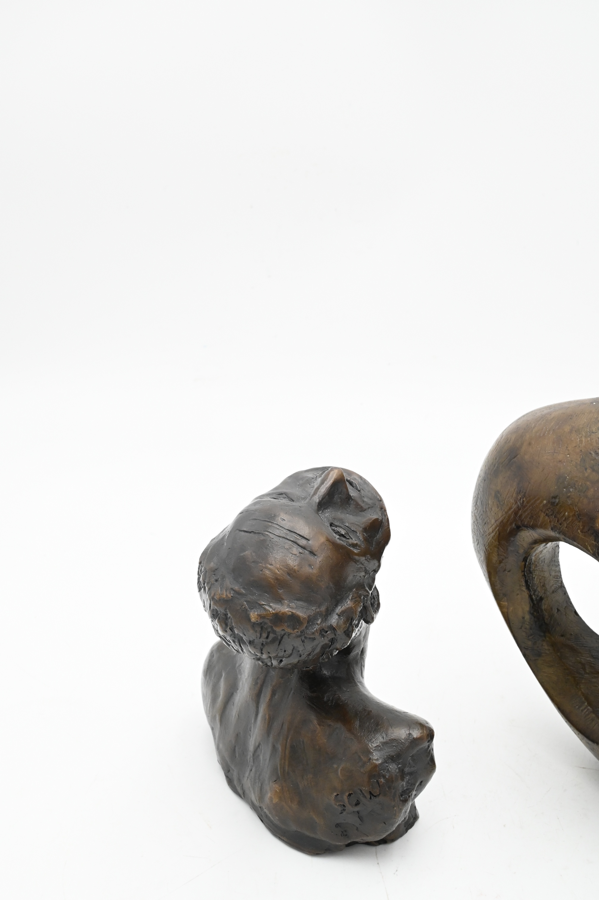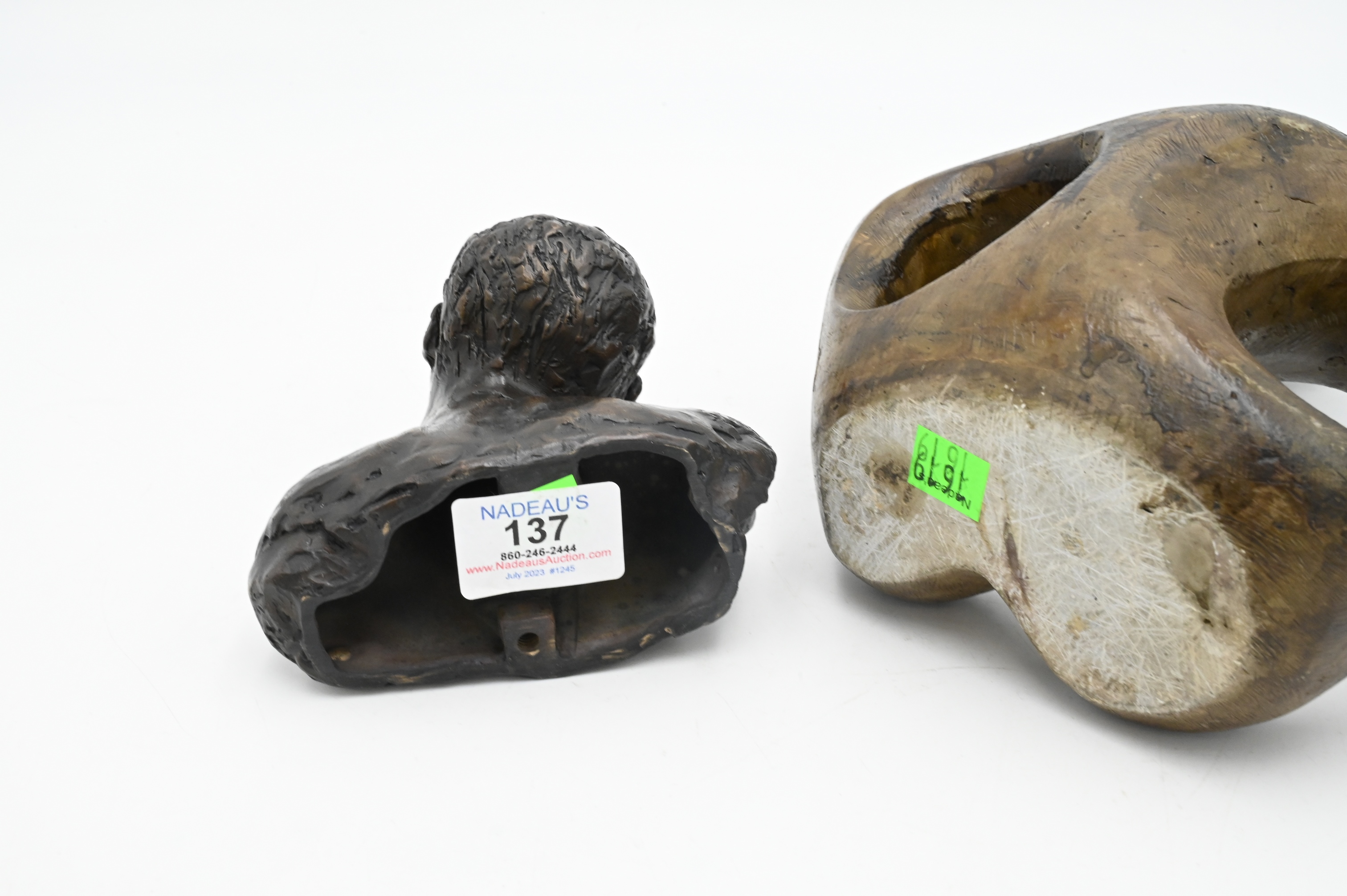 Contemporary Bronze Bust of a Man Sculpture, initialed “SCW” or “SGW” along with a resin sculpture, height 5 1/2 inches, resin sculpture length 10 inches.