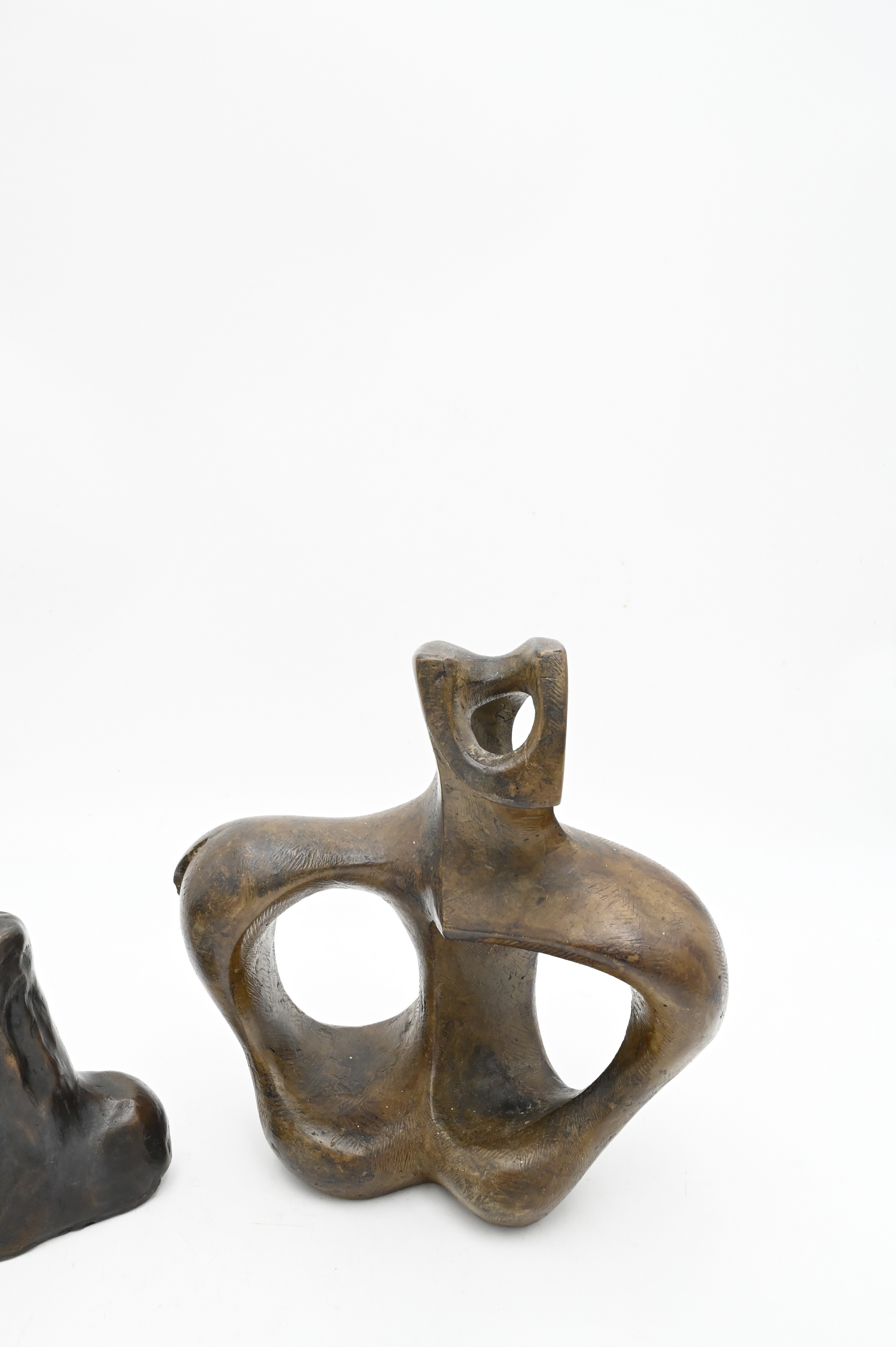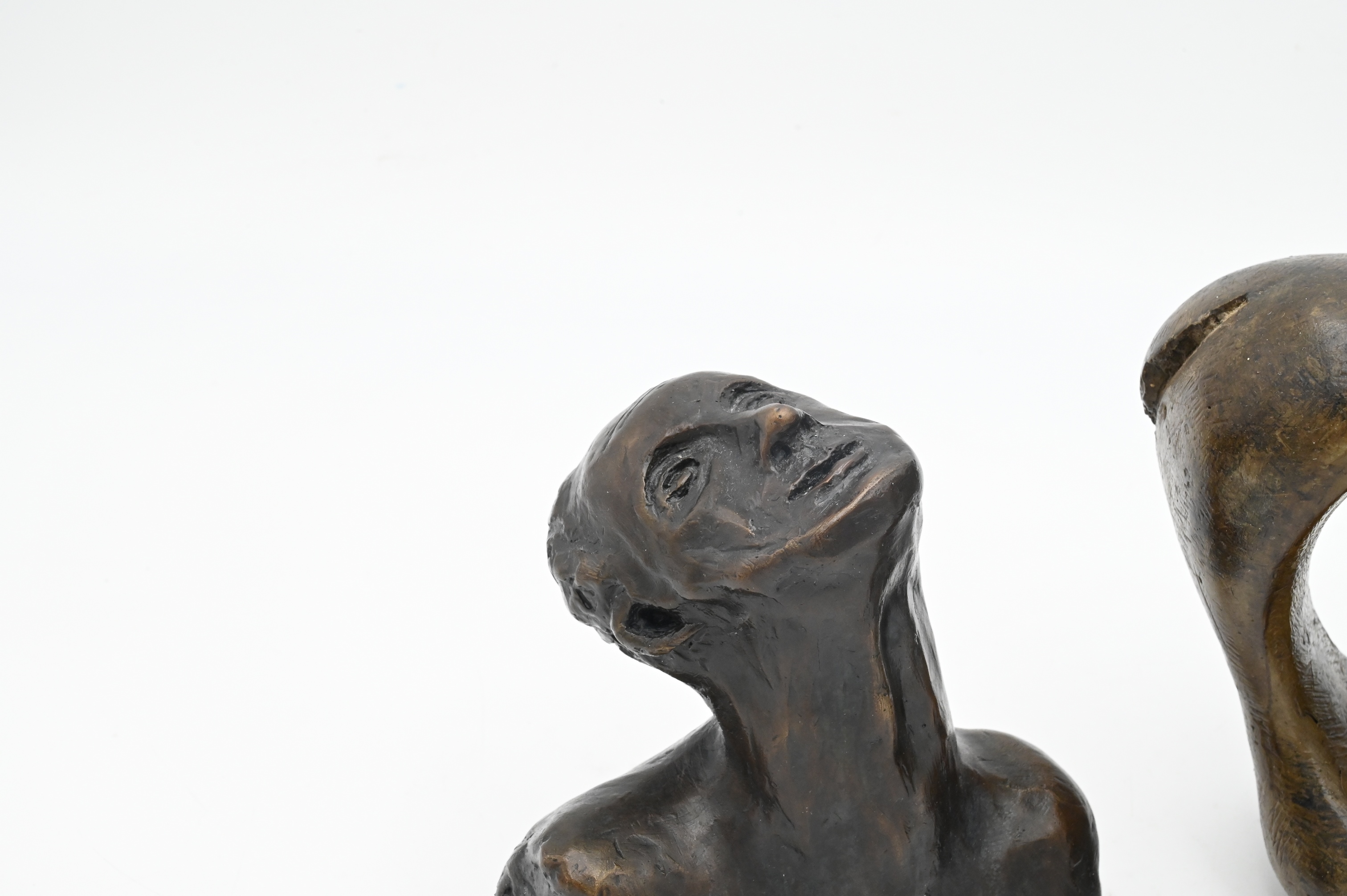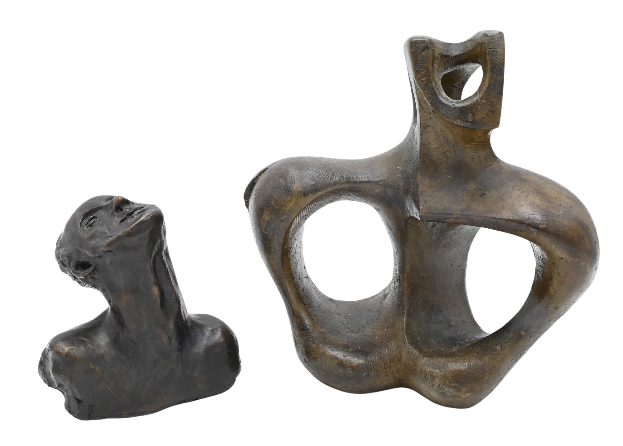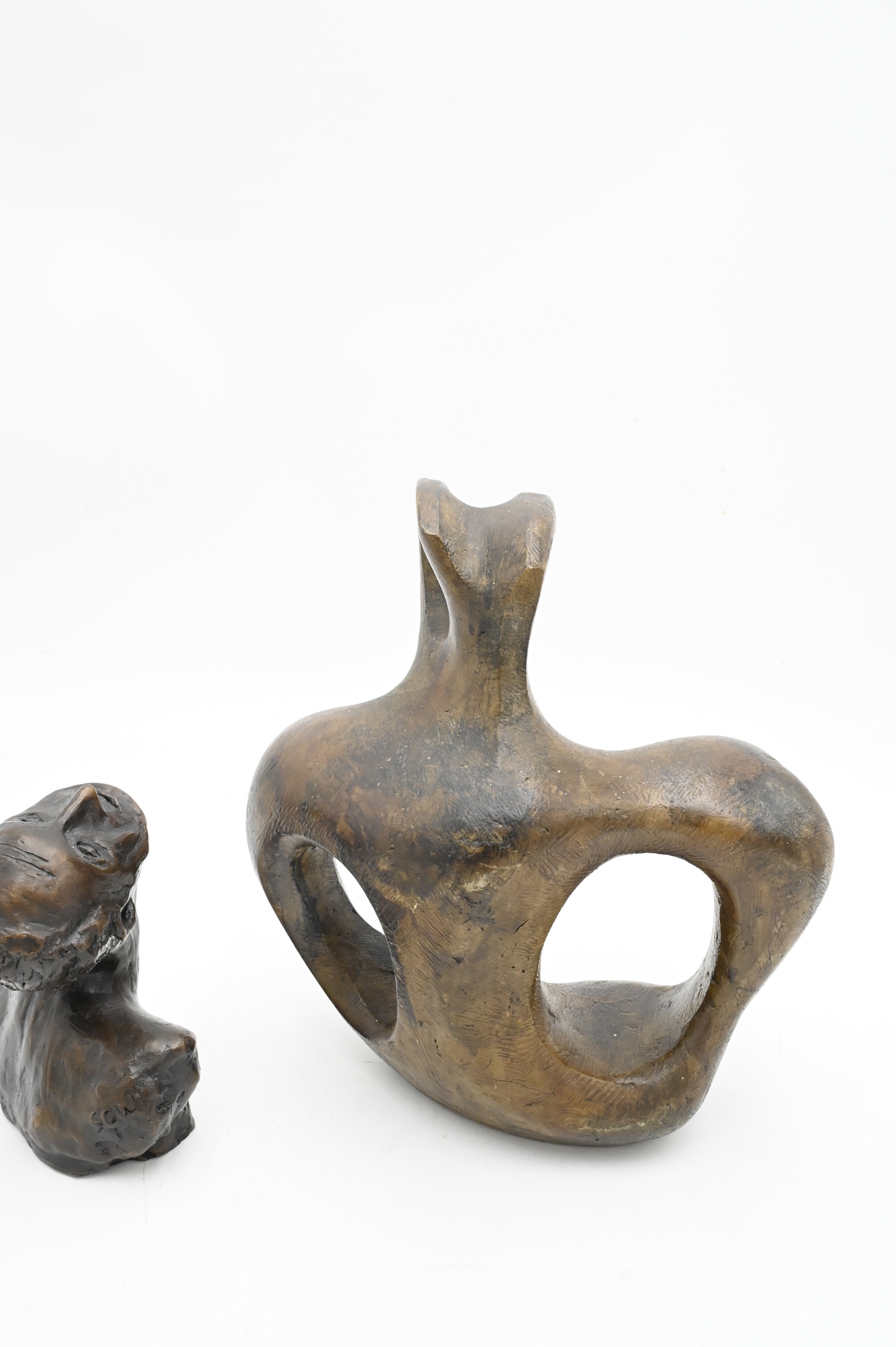 Contemporary Bronze Bust of a Man Sculpture, initialed “SCW” or “SGW” along with a resin sculpture, height 5 1/2 inches, resin sculpture length 10 inches.