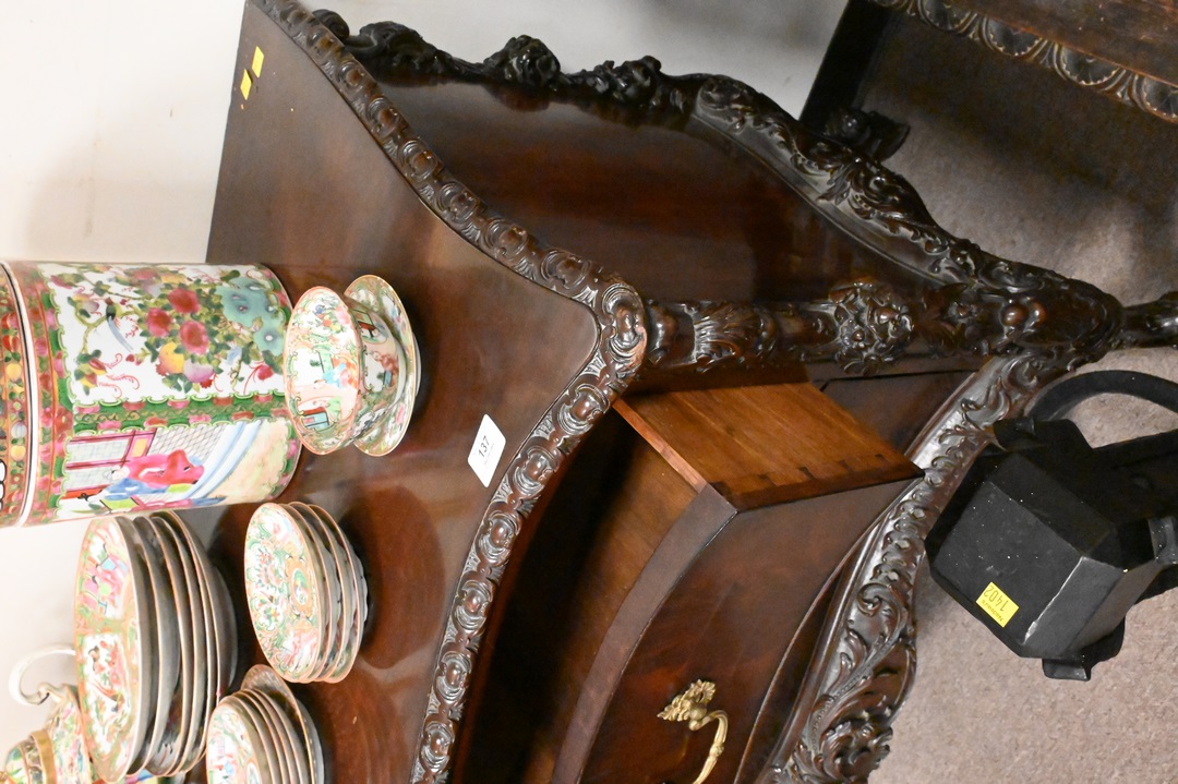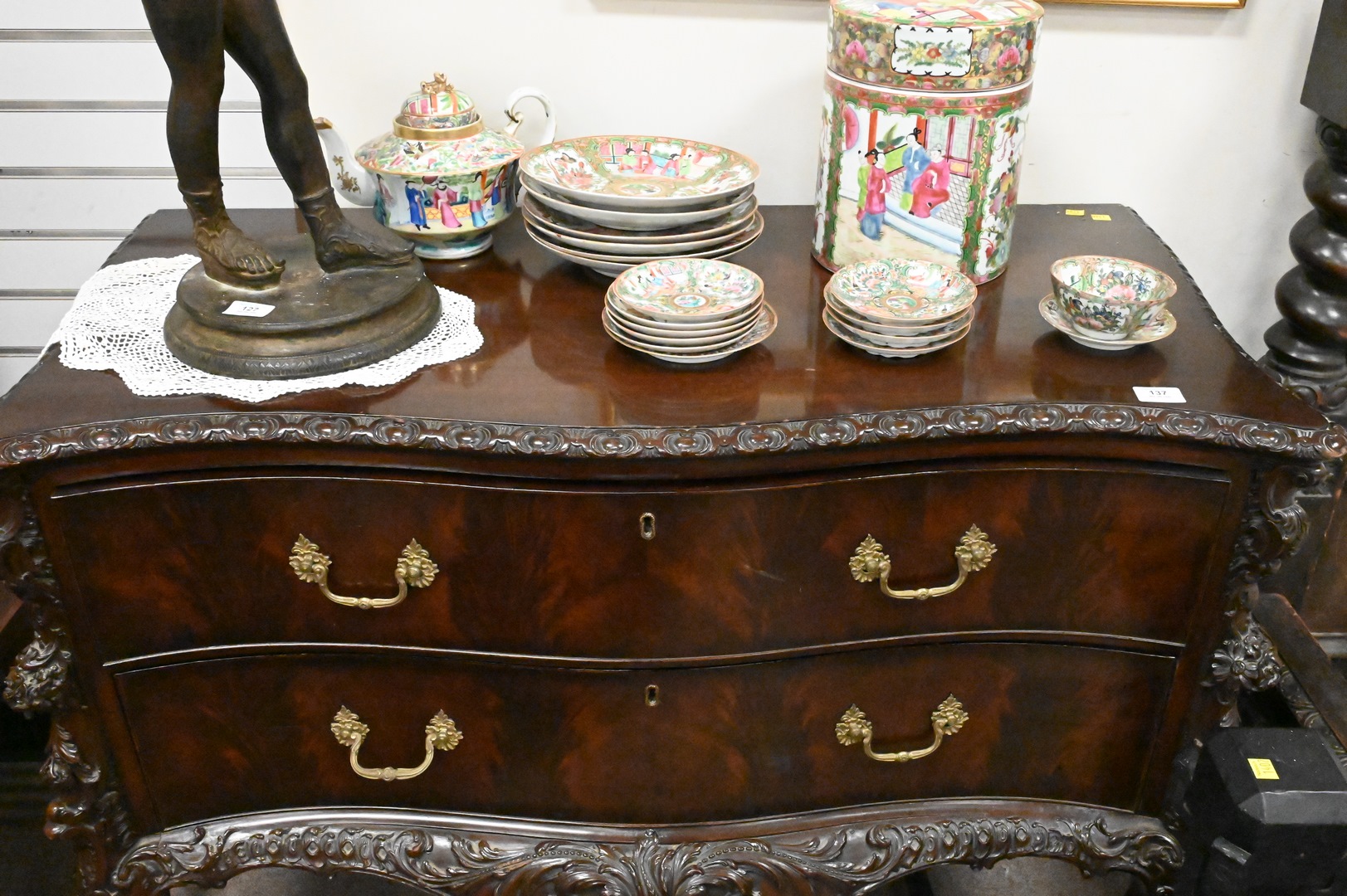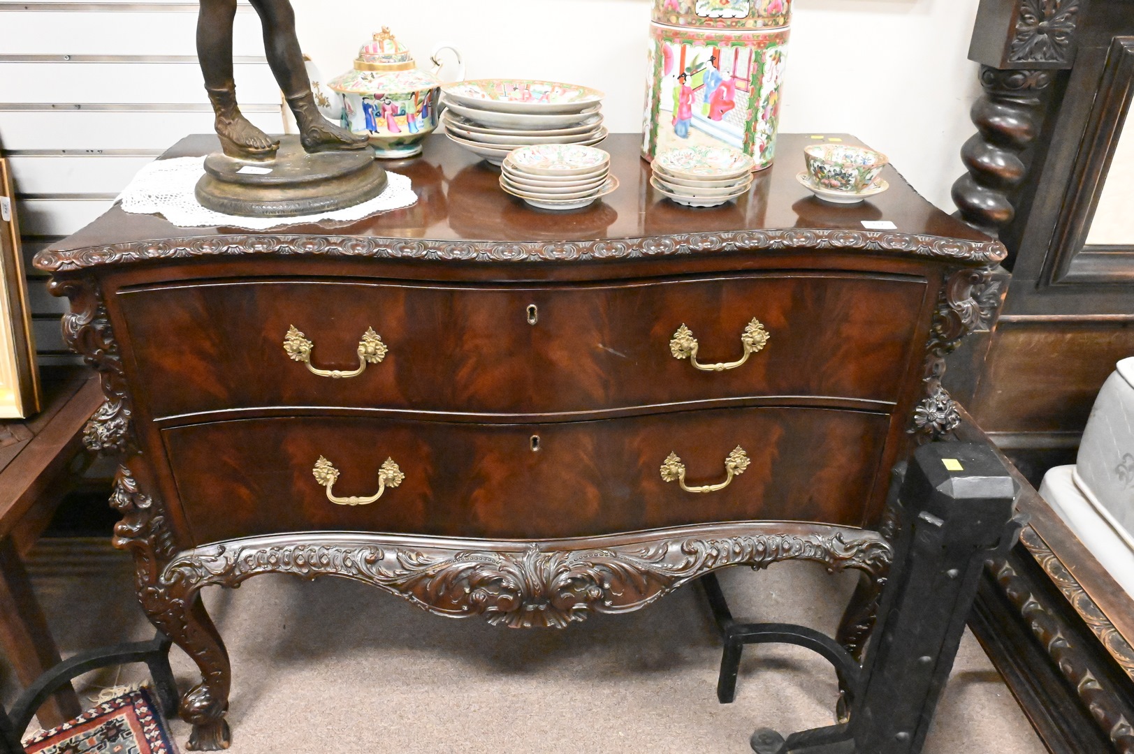 Continental Mahogany Server/Commode, having carved ends, top and feet, height 33 inches, top 44 inches.