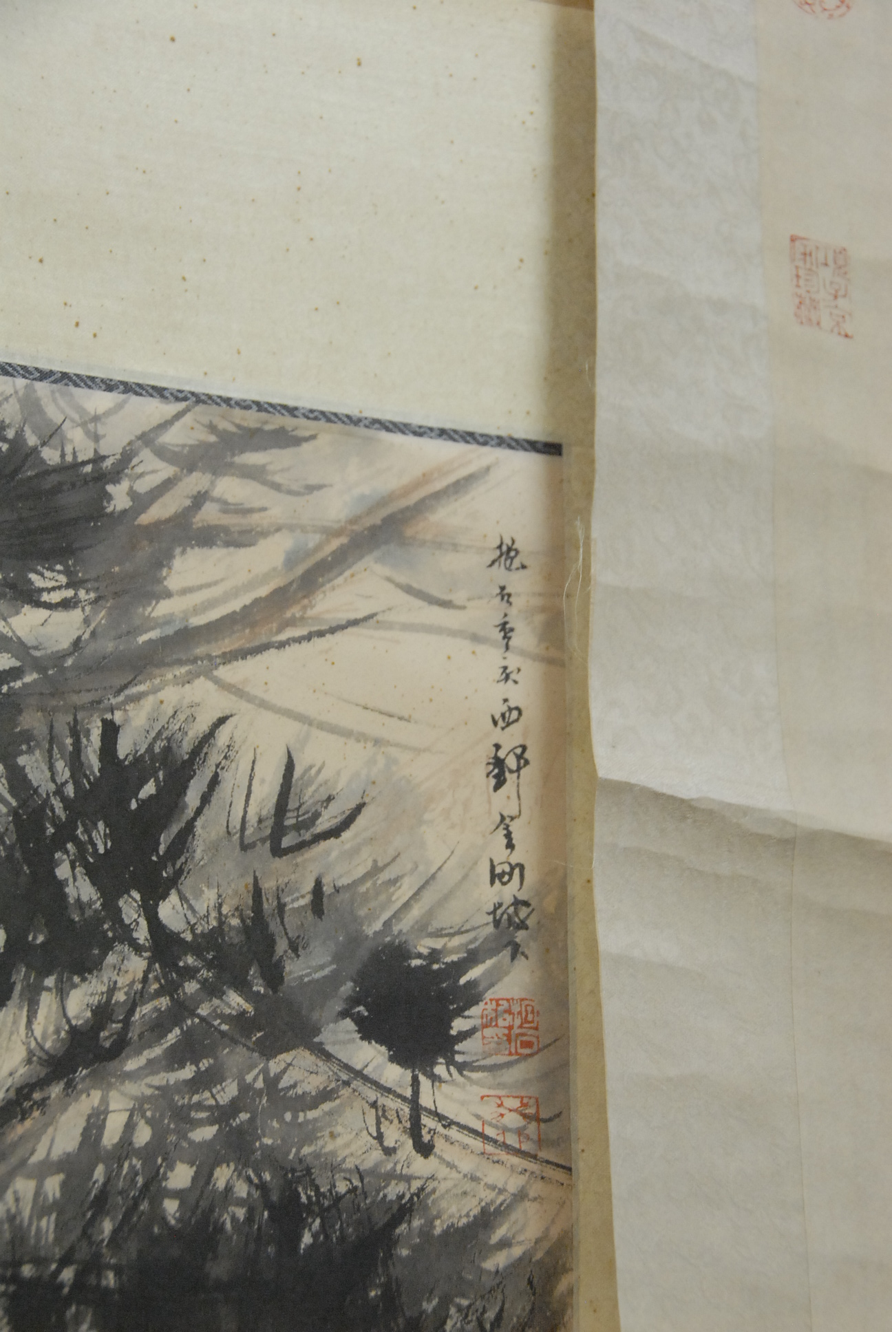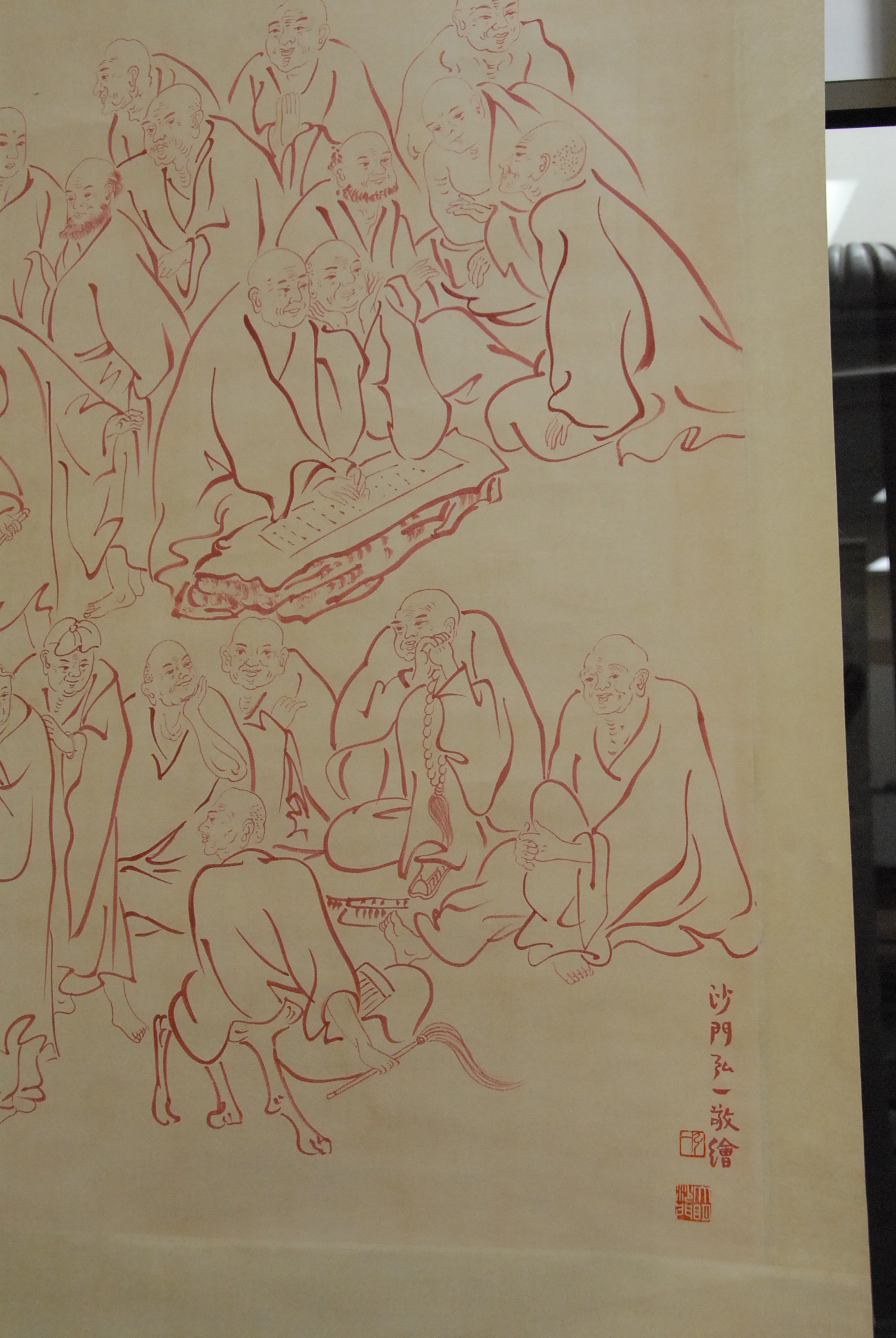 Lot 137: Group of three oriental scrolls , red watercolor