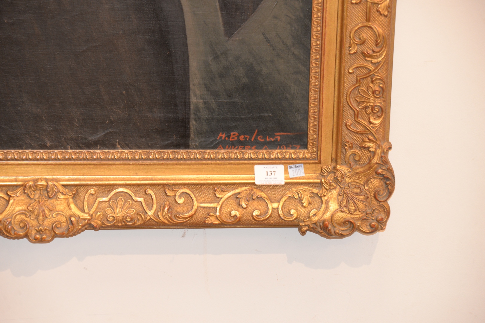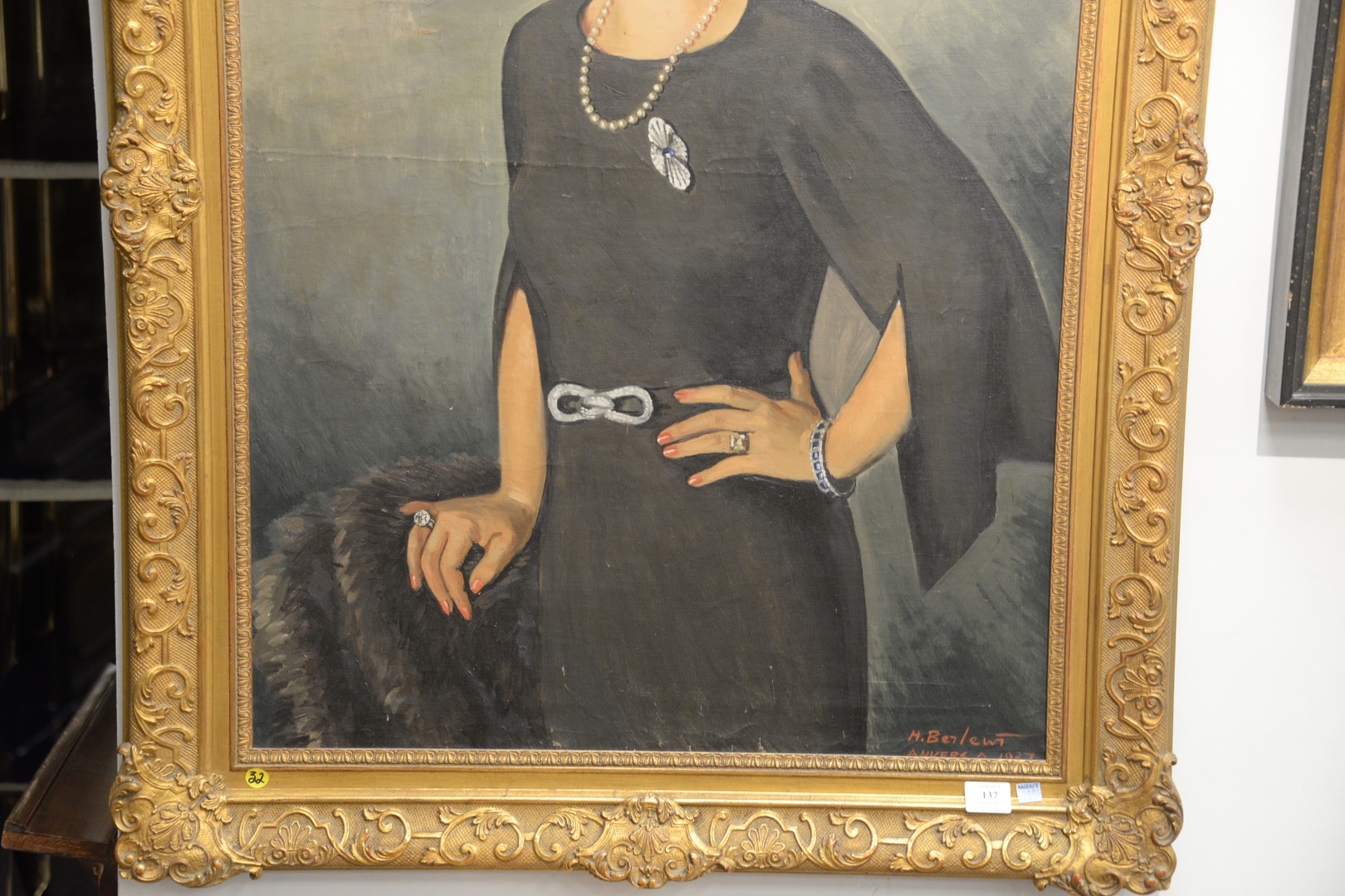 Lot 137: Henryk Berlewi (Polish, 1894 – 1967), “Portrait of a Lady, 1927″, oil on canvas, signed and dated lower right ‘H. Berlwei, 1937’, 38 1/4″ x 27 1/4”. Provenance: The Estate of Alina Roisen, Park Avenue, New York.