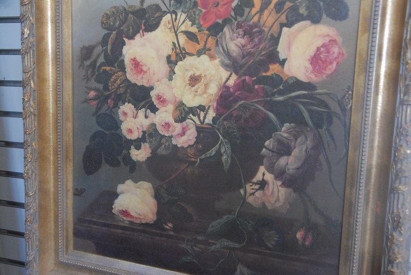 Lot 137: Johann Baptist Drechsler print on canvas of roses and carnations, 30 x 23.