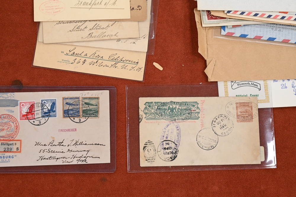 Lot 137: Lot of Miscellaneous Ephemera, to include foreign covers, stamps, postcards, alogn with souvenir sheets.