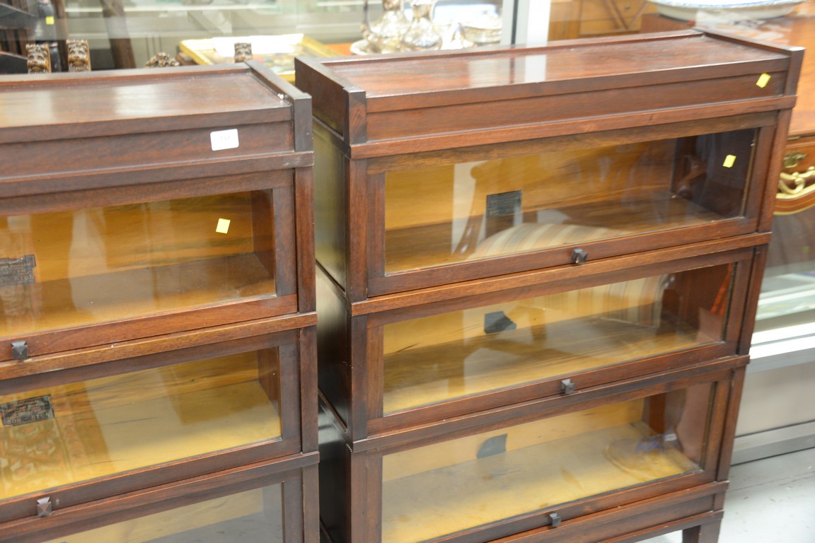 Pair of Globe Wernicke three section mahogany bookcases. ht. 47 in. wd. 34 in. dp. 11 in.