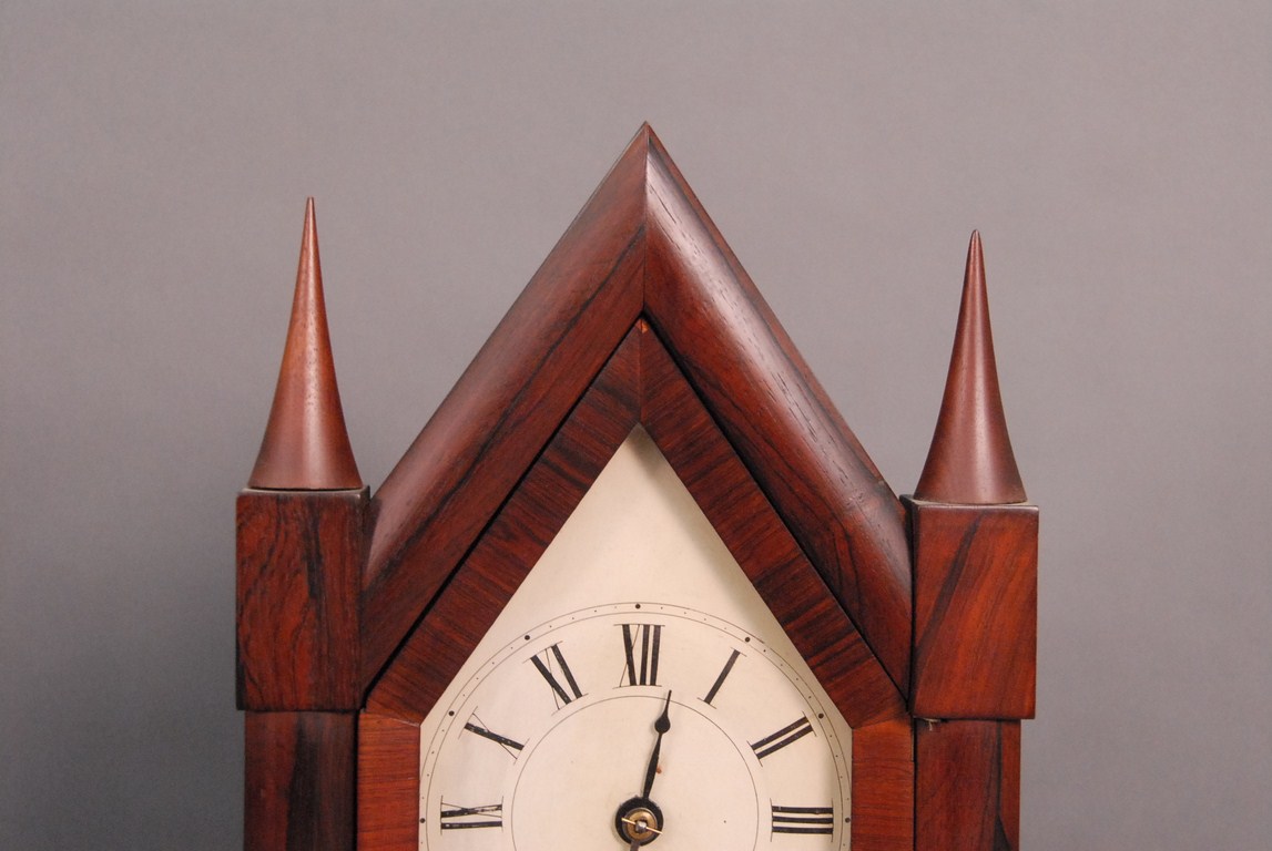 Rosewood double steeple shelf clock Elisha Monross. ht. 23 1/2in. wd. 13in. Provenance: Estate of Judy McDonough Gengras of Stoner Drive, West Hartford, Connecticut.