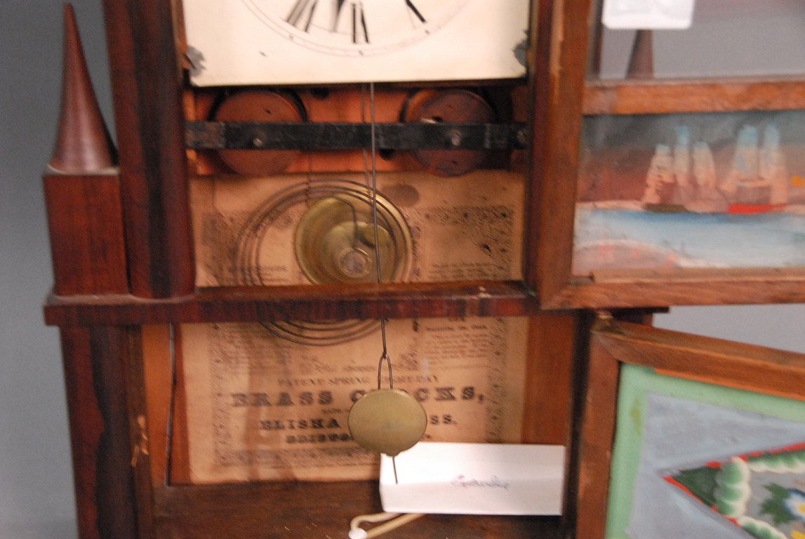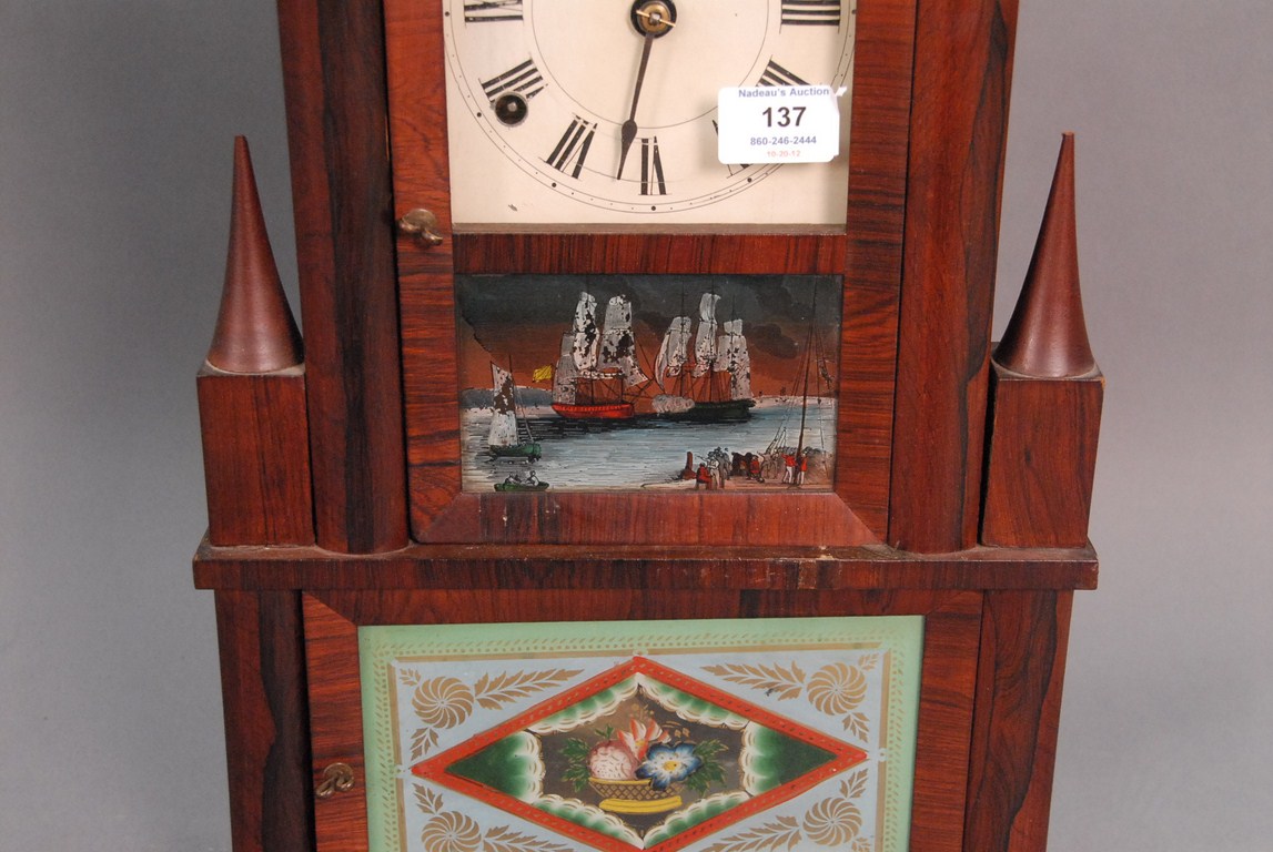Lot 137: Rosewood double steeple shelf clock Elisha Monross.